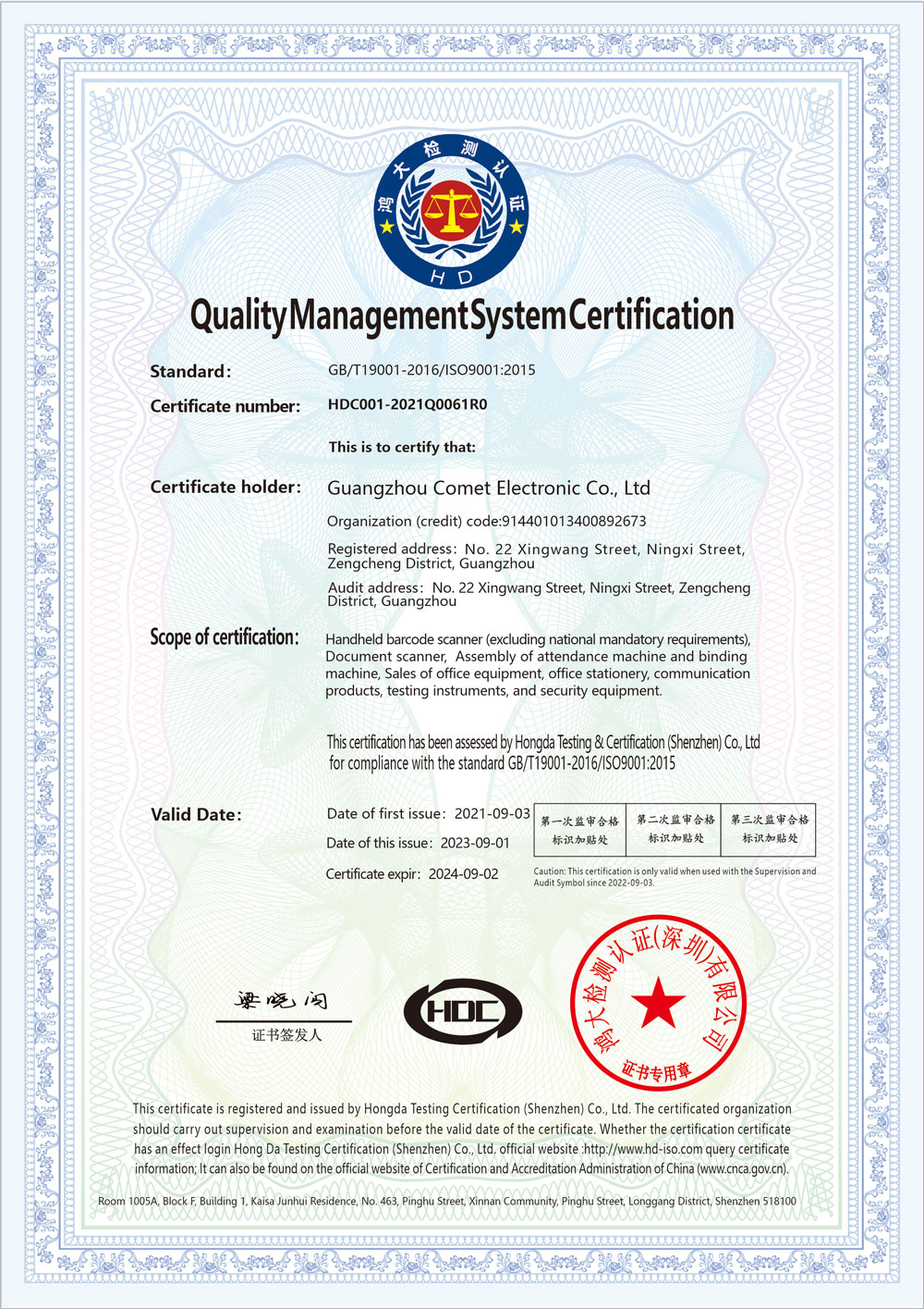 质量管理体系认证证书