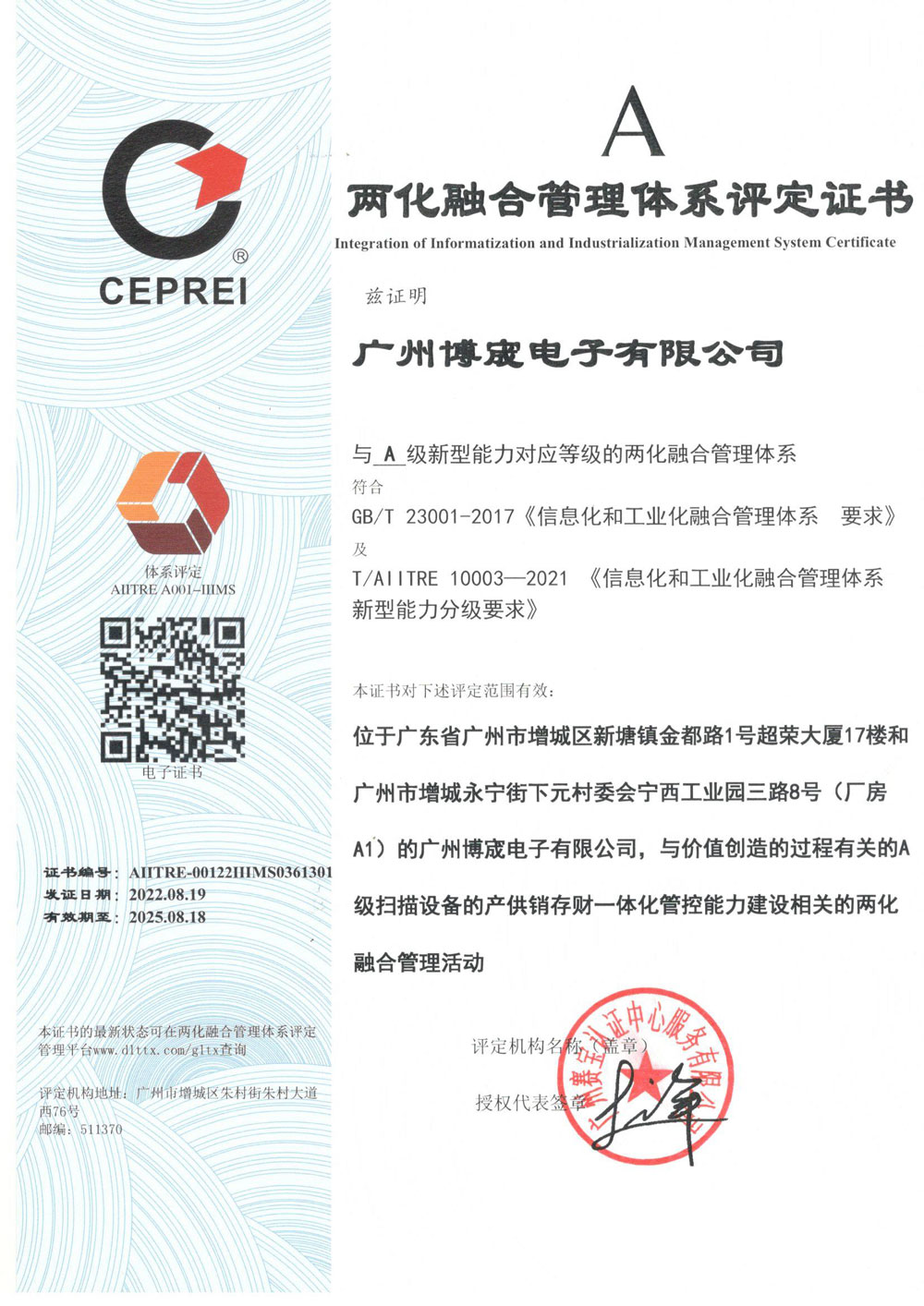 两化融合管理体系证书