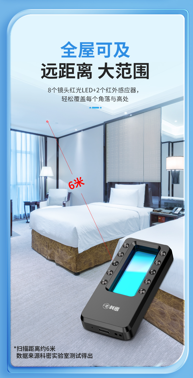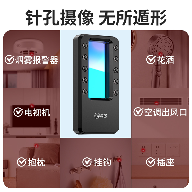 科密摄像头探测器酒店防偷拍触动报警红外线信号探测仪KD10S黑色款