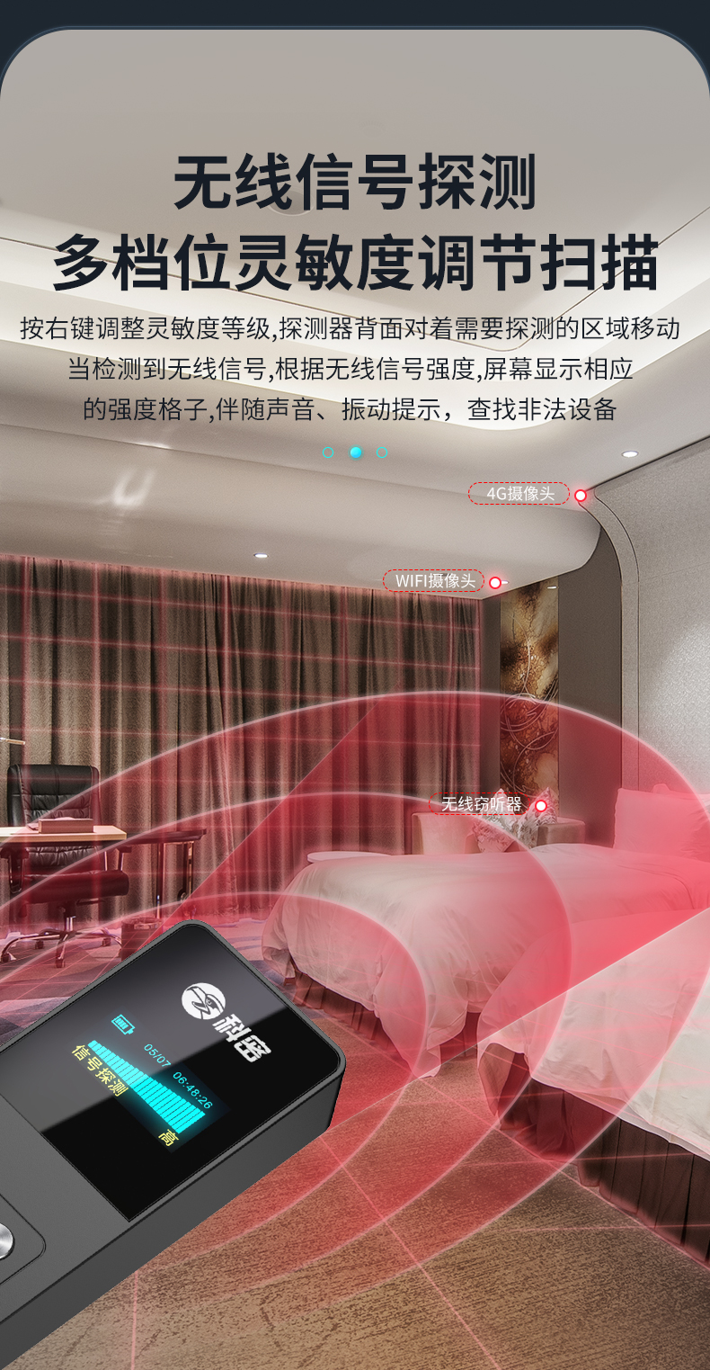 科密摄像头探测器防酒店锐意偷拍防窃听信号探测仪GPS防跟踪KD60S
