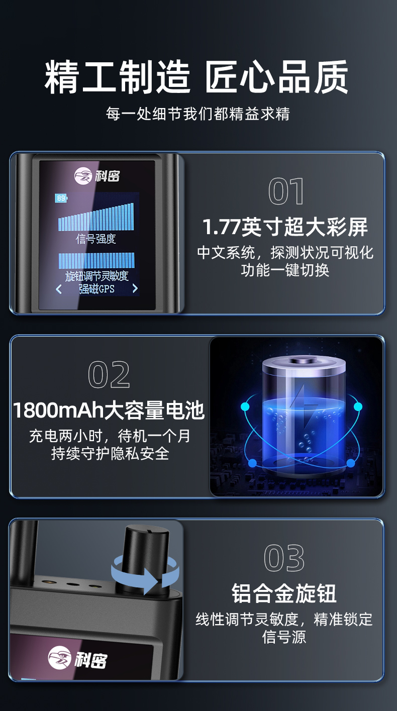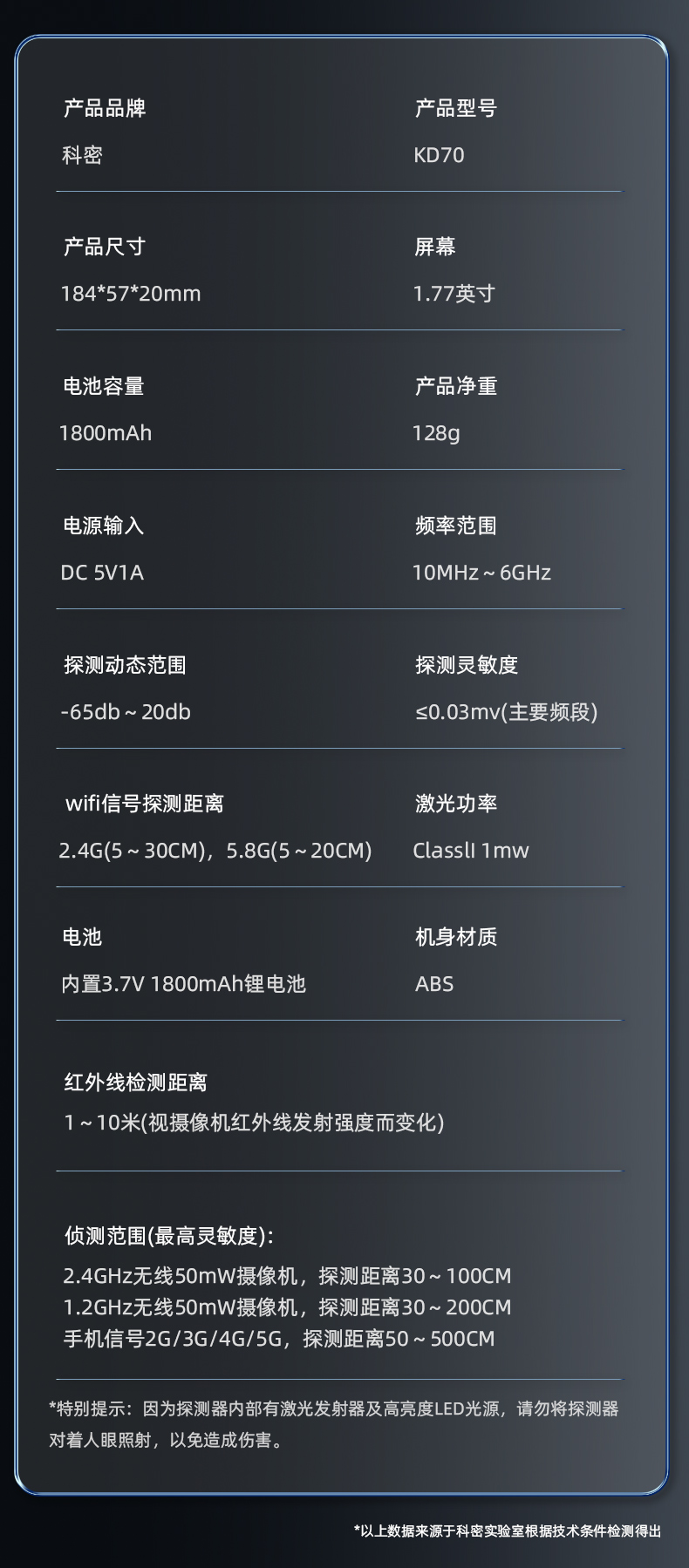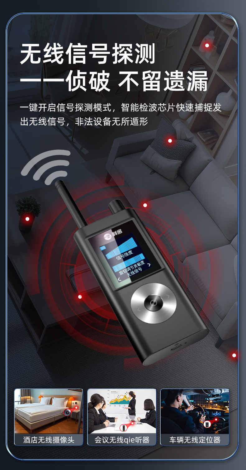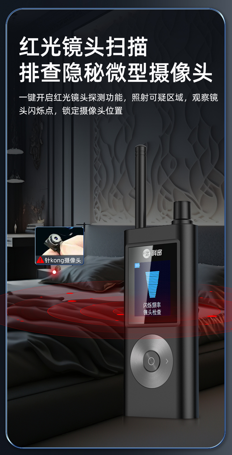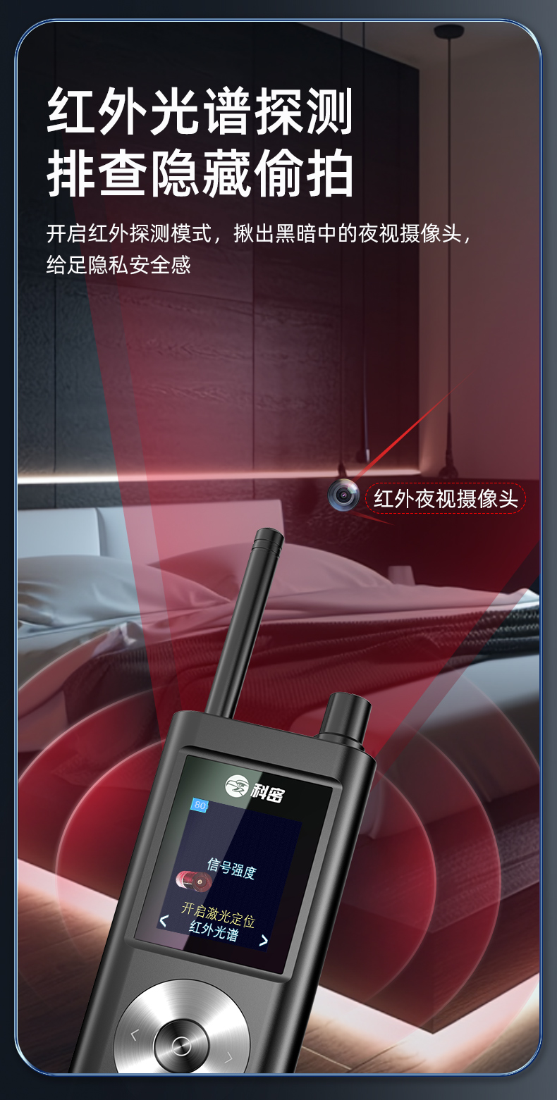 科密摄像头探测器酒店防偷拍反监听防窃听偷拍信号GPS探测仪KD70