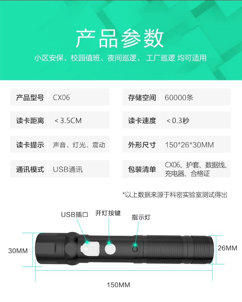 科密CX06 强光照明巡更棒 保安巡逻机打点机 电子巡更系统巡更机(配15个巡更点+5个人员扣)