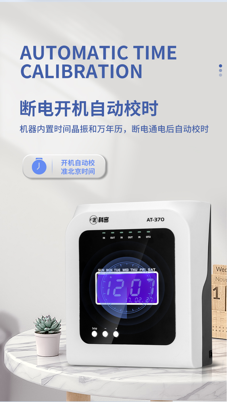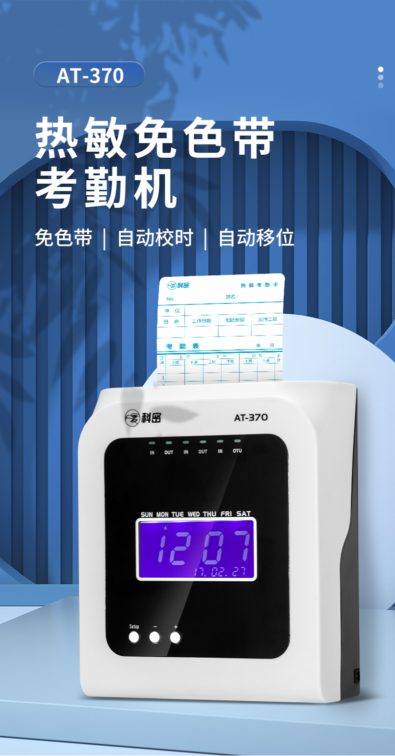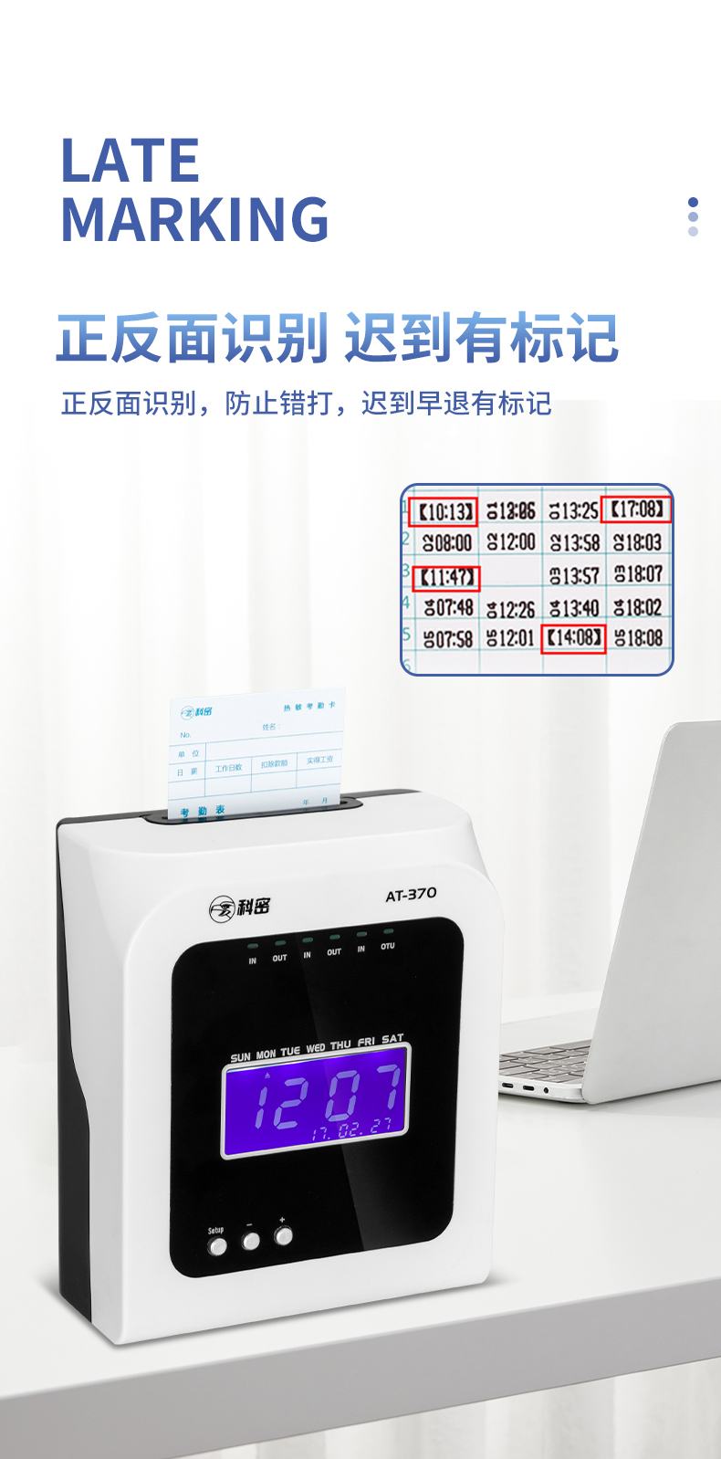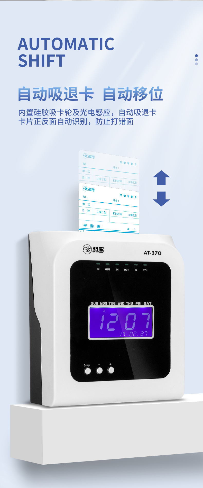 科密热敏打卡机纸卡式卡片考勤机卡纸打卡机员工上下班出勤工厂工地企业签到钟打卡钟插卡式AT370