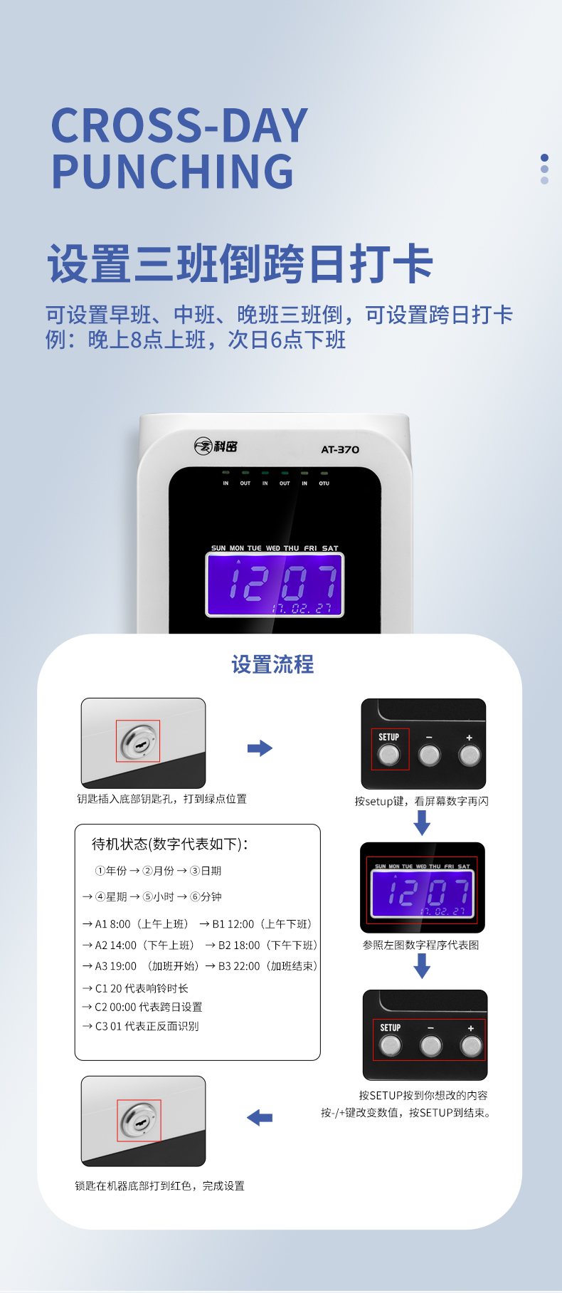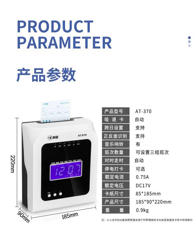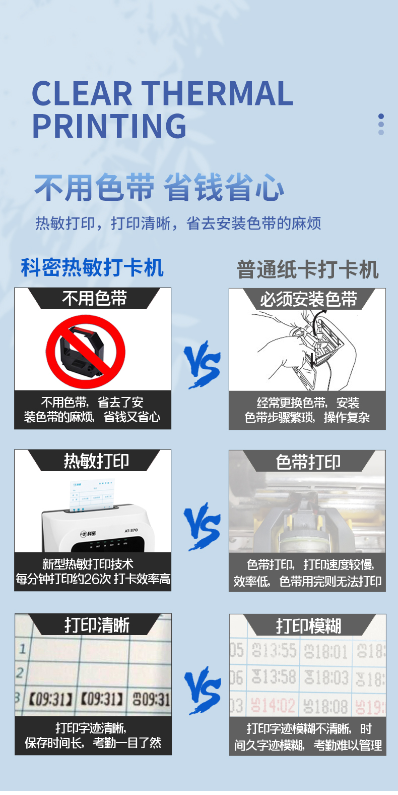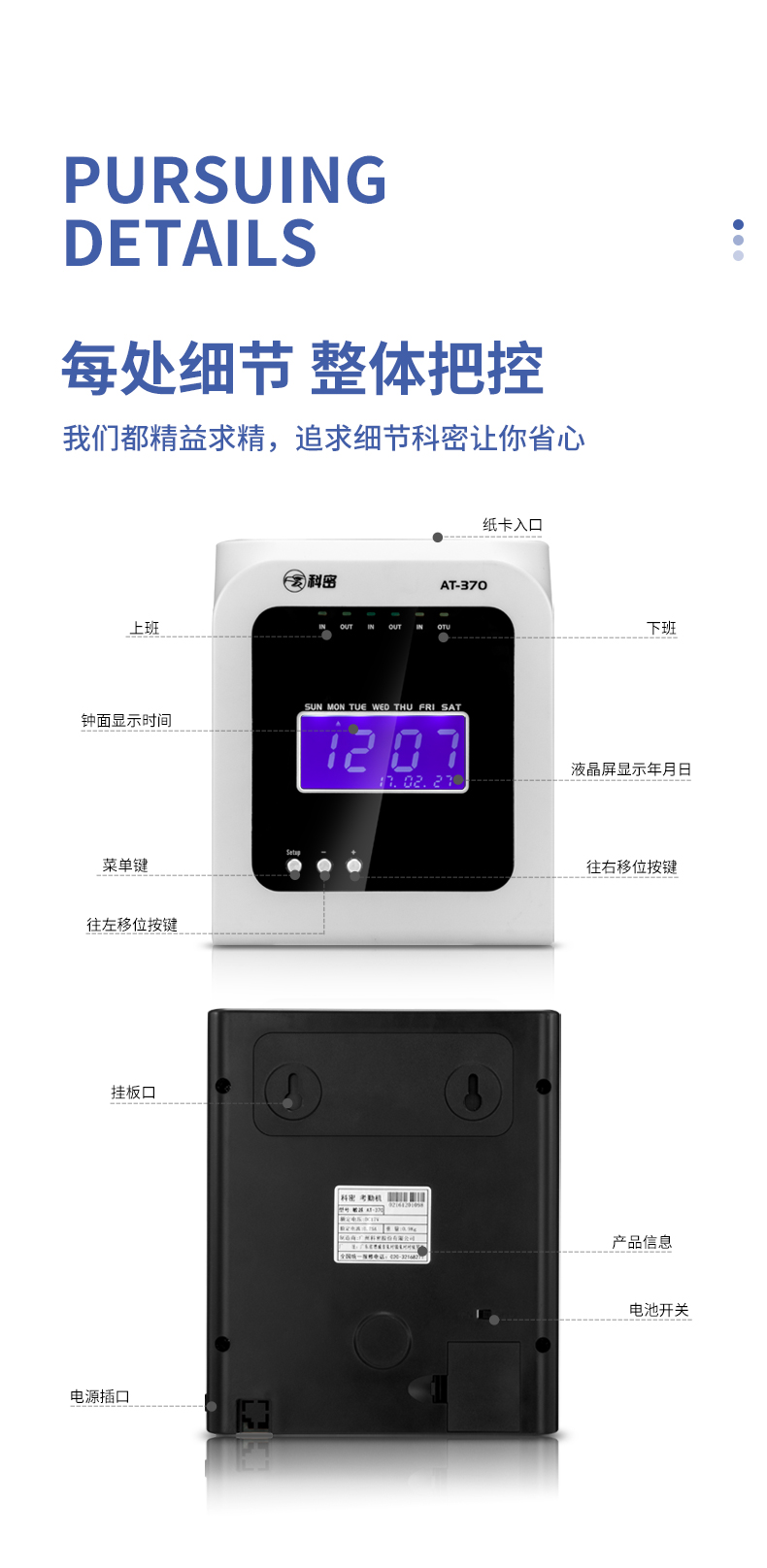 科密热敏打卡机纸卡式卡片考勤机卡纸打卡机员工上下班出勤工厂工地企业签到钟打卡钟插卡式AT370