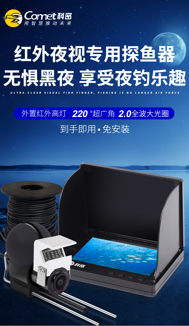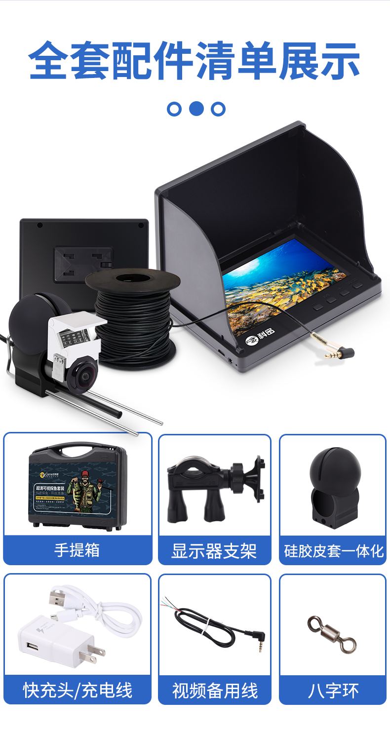 科密超清浑水透探鱼器锚鱼显示屏夜视水底看鱼摄像探鱼VF53FP