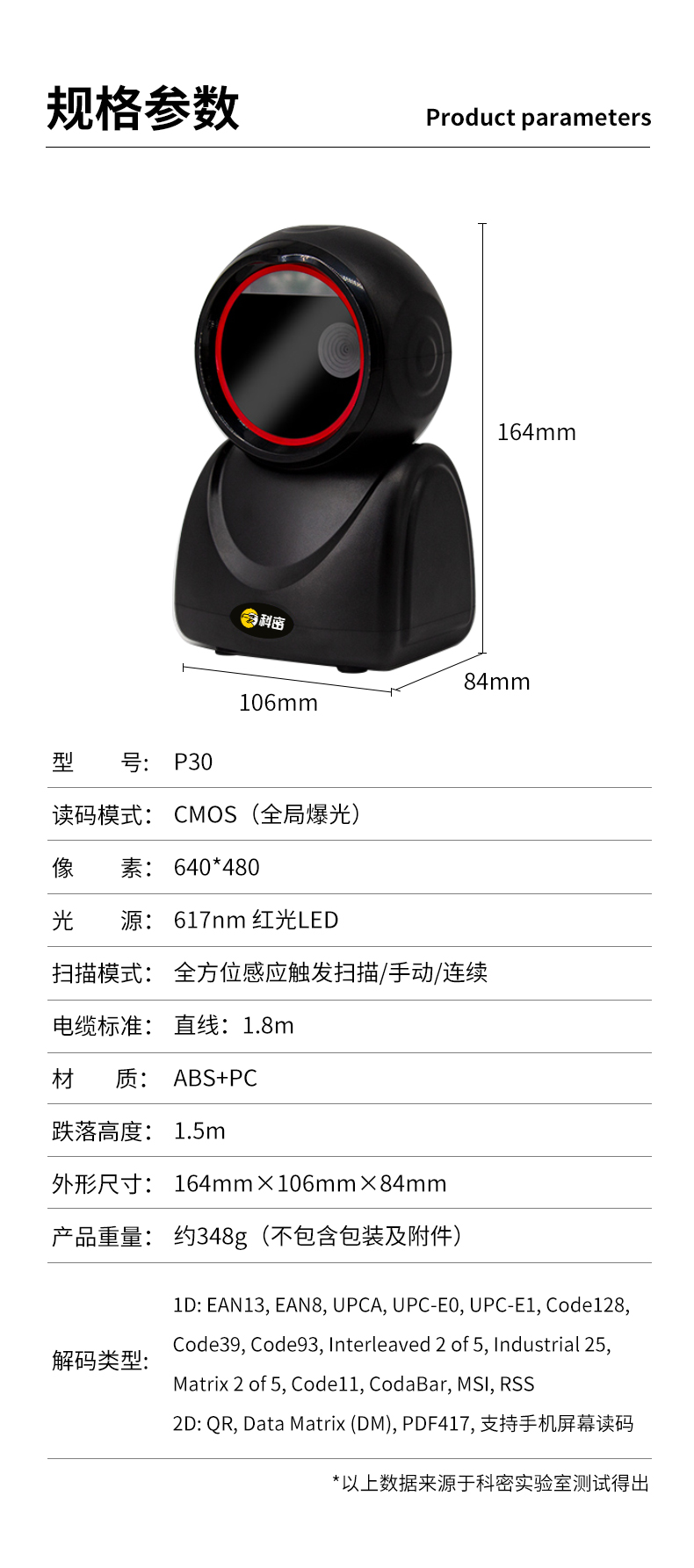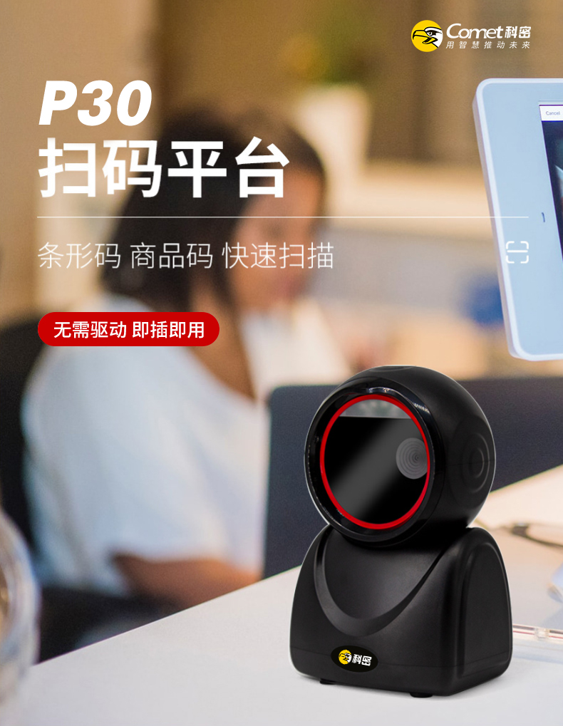 科密商用收款扫码机一体机快速通用扫描枪一维二维码支付收银扫码枪扫描平台P30