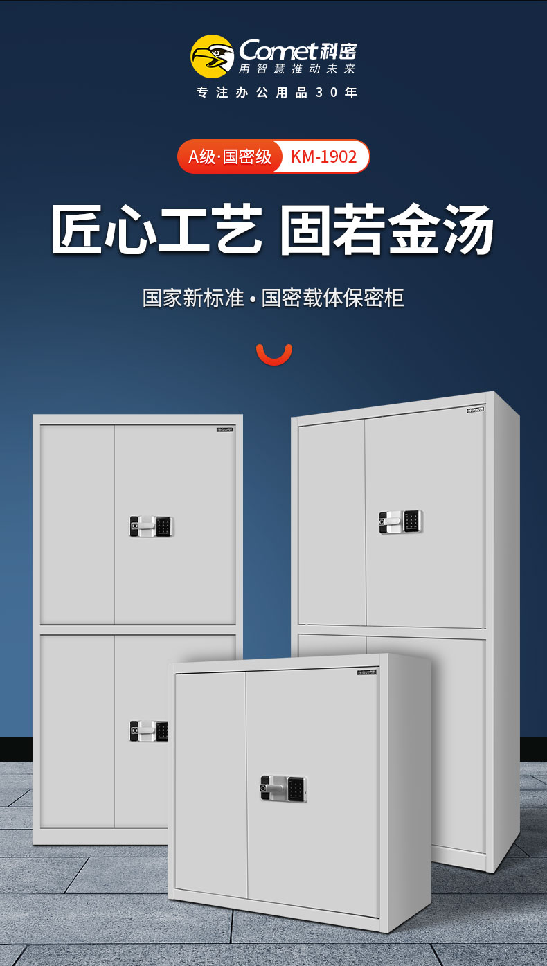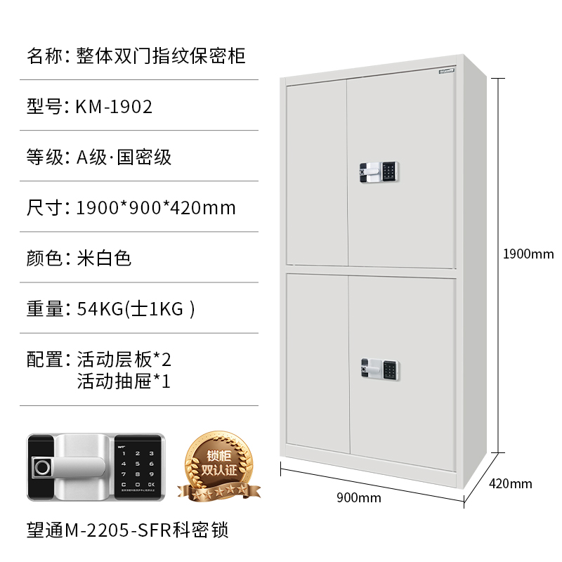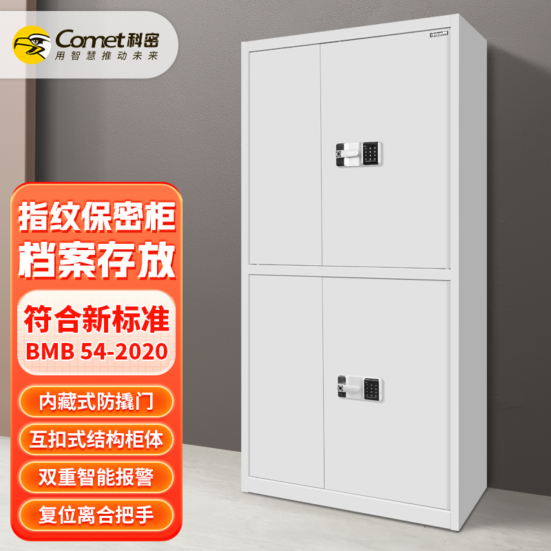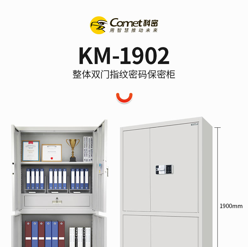 科密 KM1902保密柜电子密码锁指纹锁钢制办公密码锁柜档案柜带抽屉铁皮柜 通双节指纹保密柜