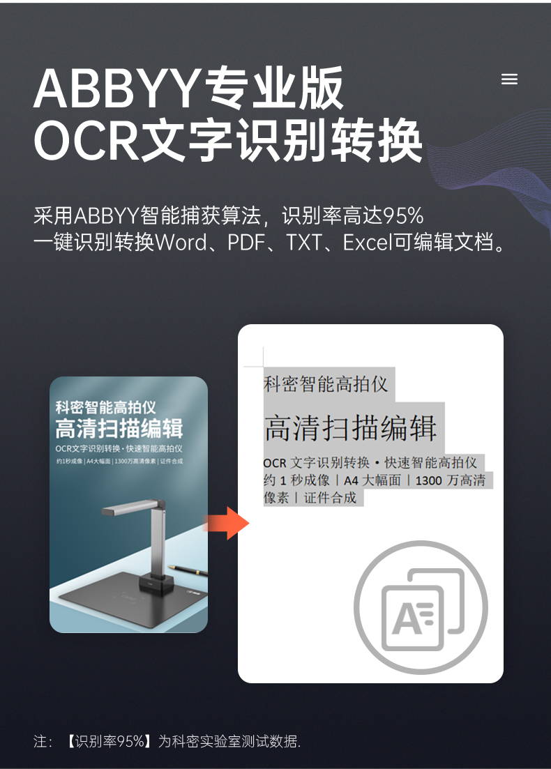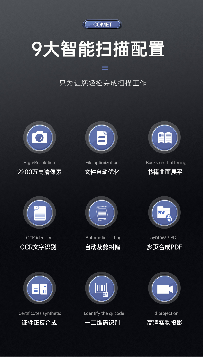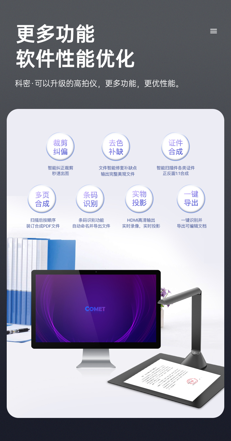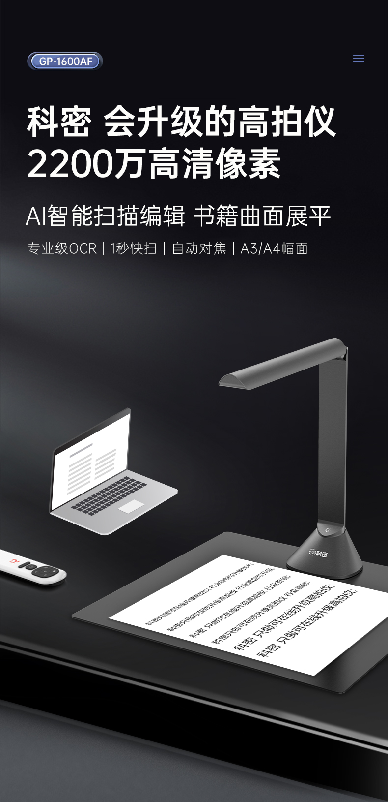 科密(comet) GP1600AF 高拍仪 2200万像素 可在线升级A3A4扫描仪 PDF合成 OCR识别 书籍展平 国产系统