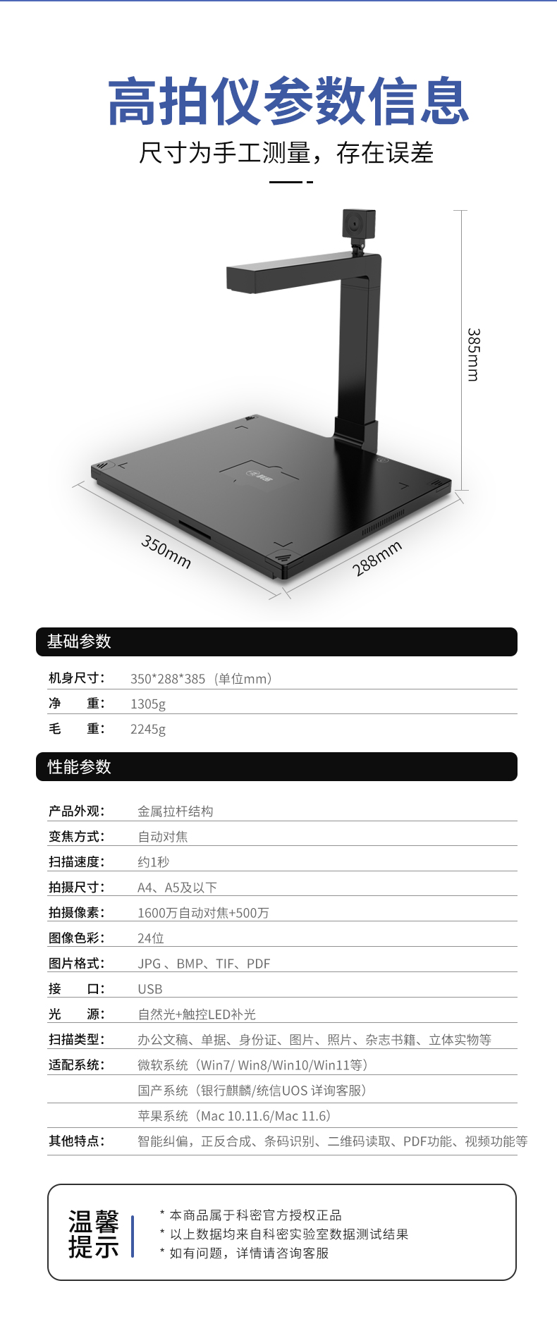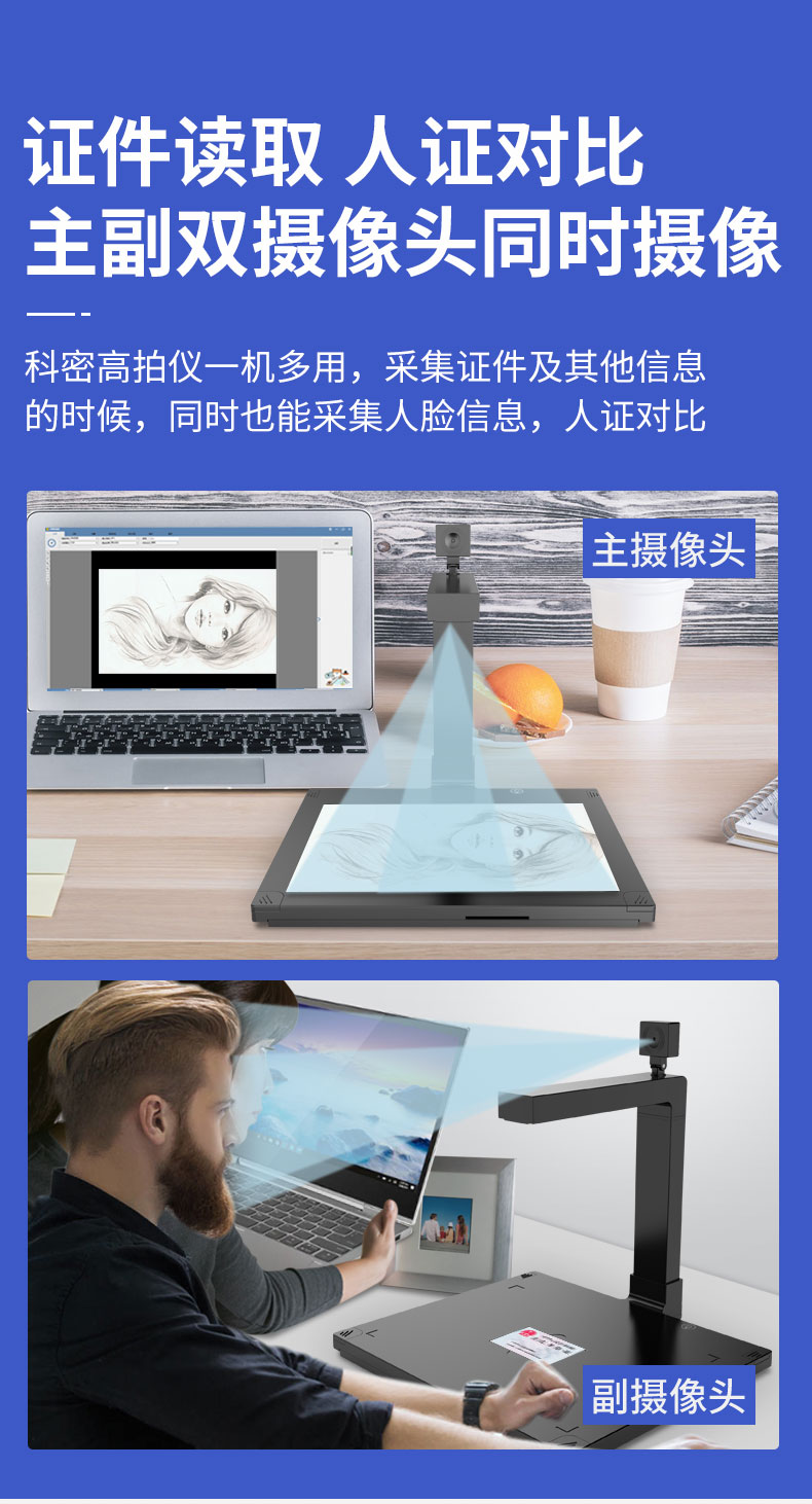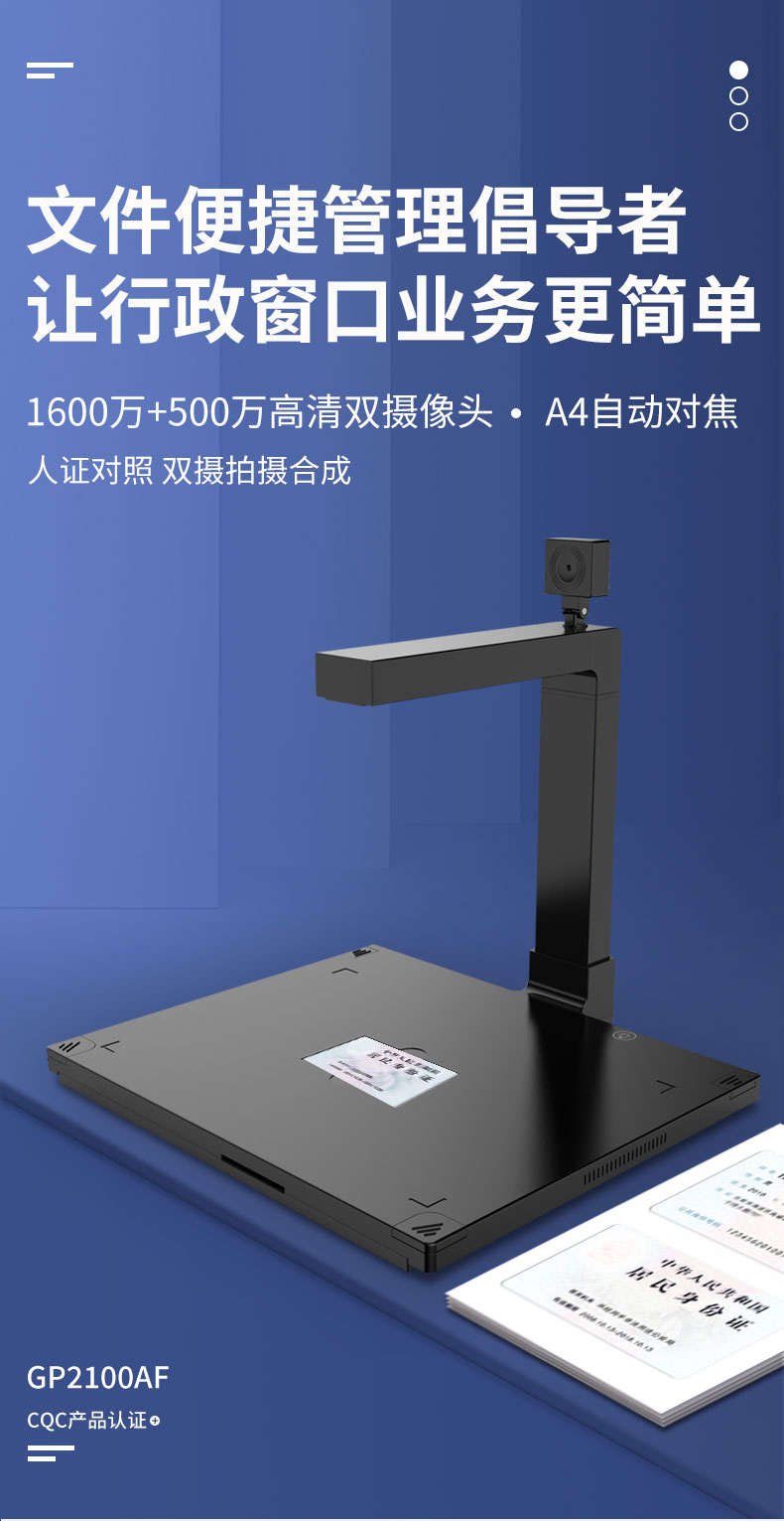 科密(comet) GP2100AF 高拍仪 1600万+500万像素双摄A4扫描仪 文件PDF合成 银行行政中心 适配国产系统