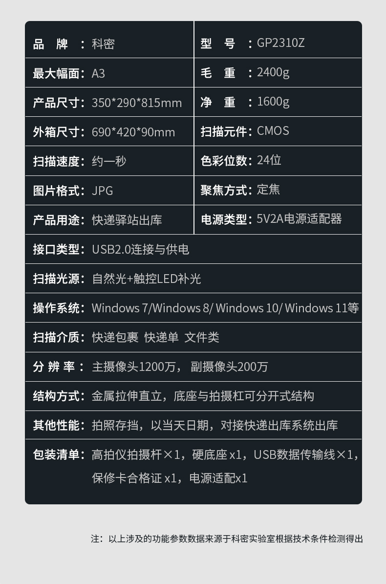 科密(comet) 快递驿站出库高拍仪一体机 多快递对接 1200万像素双摄扫描仪 底单签收自动拍照出库仪 GP2310Z
