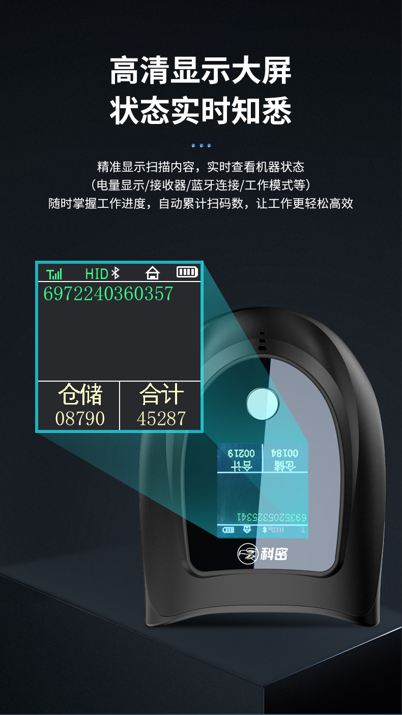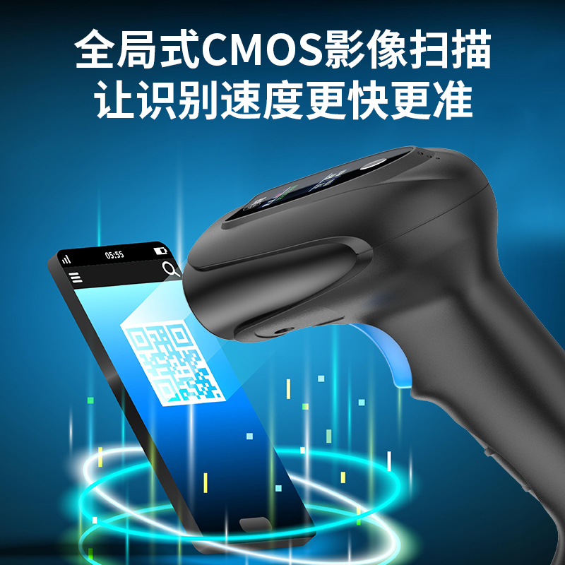 Comet科密T68D带屏幕二维码条码枪无线蓝牙扫描枪收银盘点商超收银扫码枪标配底座