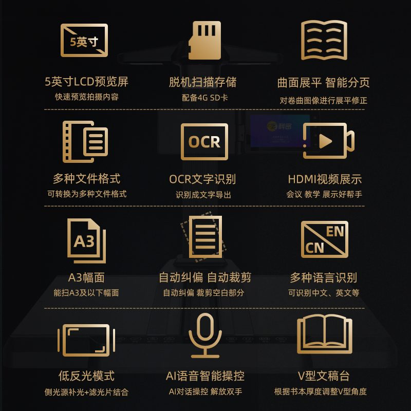 科密 GP3320Z 2500万高清像素高拍仪 书籍成册扫描曲面展平 A3A4古籍物证档案扫描仪
