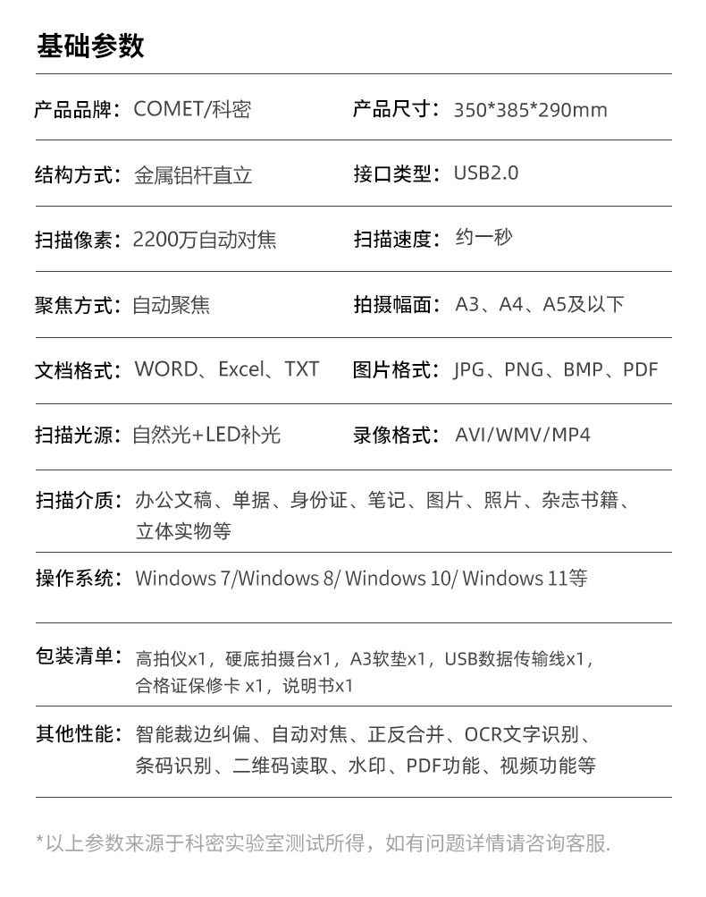 科密(comet) A5318高拍仪 2200万高清像素 A3A4扫描仪 远程网课图书馆档案室