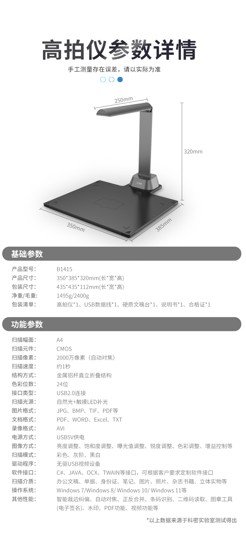 科密(comet) 科密 B1415 高拍仪 2000万像素扫描仪 高清高速A4文档资料照片智能编辑