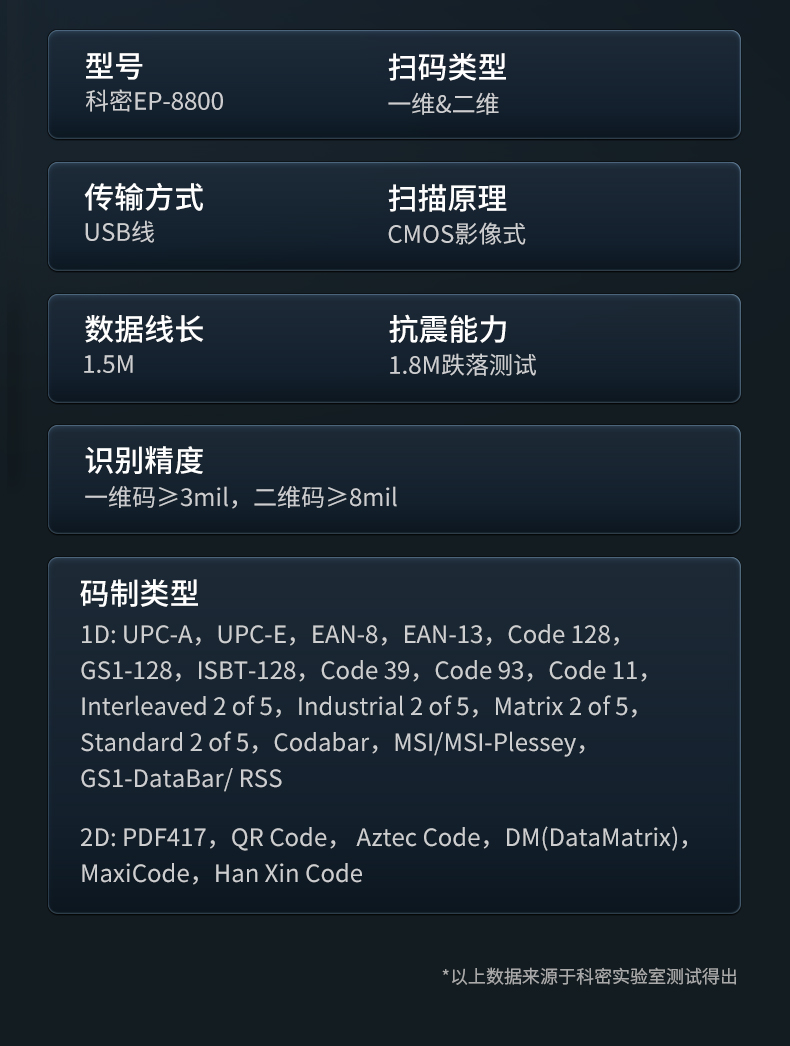 科密(comet)EP-8800扫描枪扫码枪 有线一二维码条码枪 条形码超市收银快递仓库医药盘点 支持国产系统