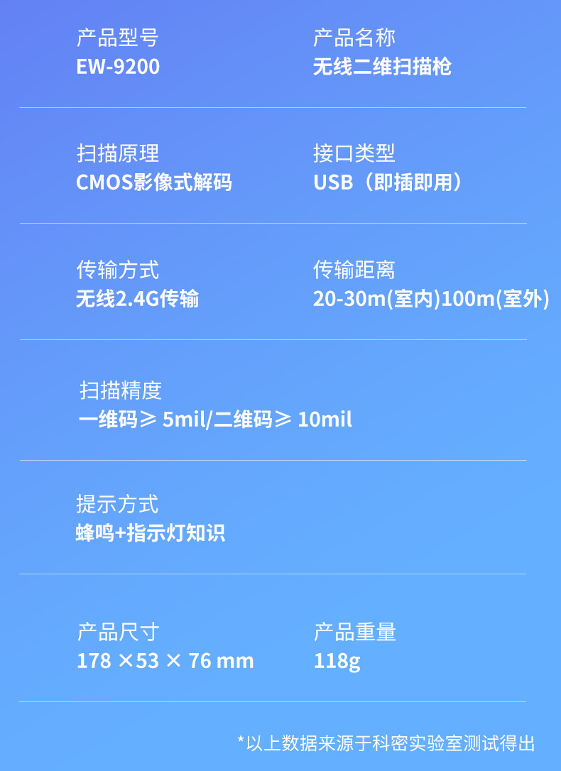 科密(comet)EW-9200 无线一二维码扫描枪扫码枪条码枪扫码器 商超餐饮收银仓储物流盘点 农资医保码