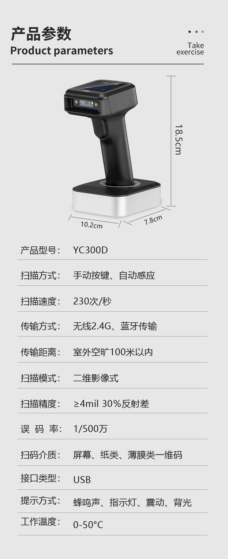 科密(comet)YC300D 扫描枪无线扫码枪 蓝牙一二维码条码枪 物流仓库餐饮商超药店收银医保码 配充电座