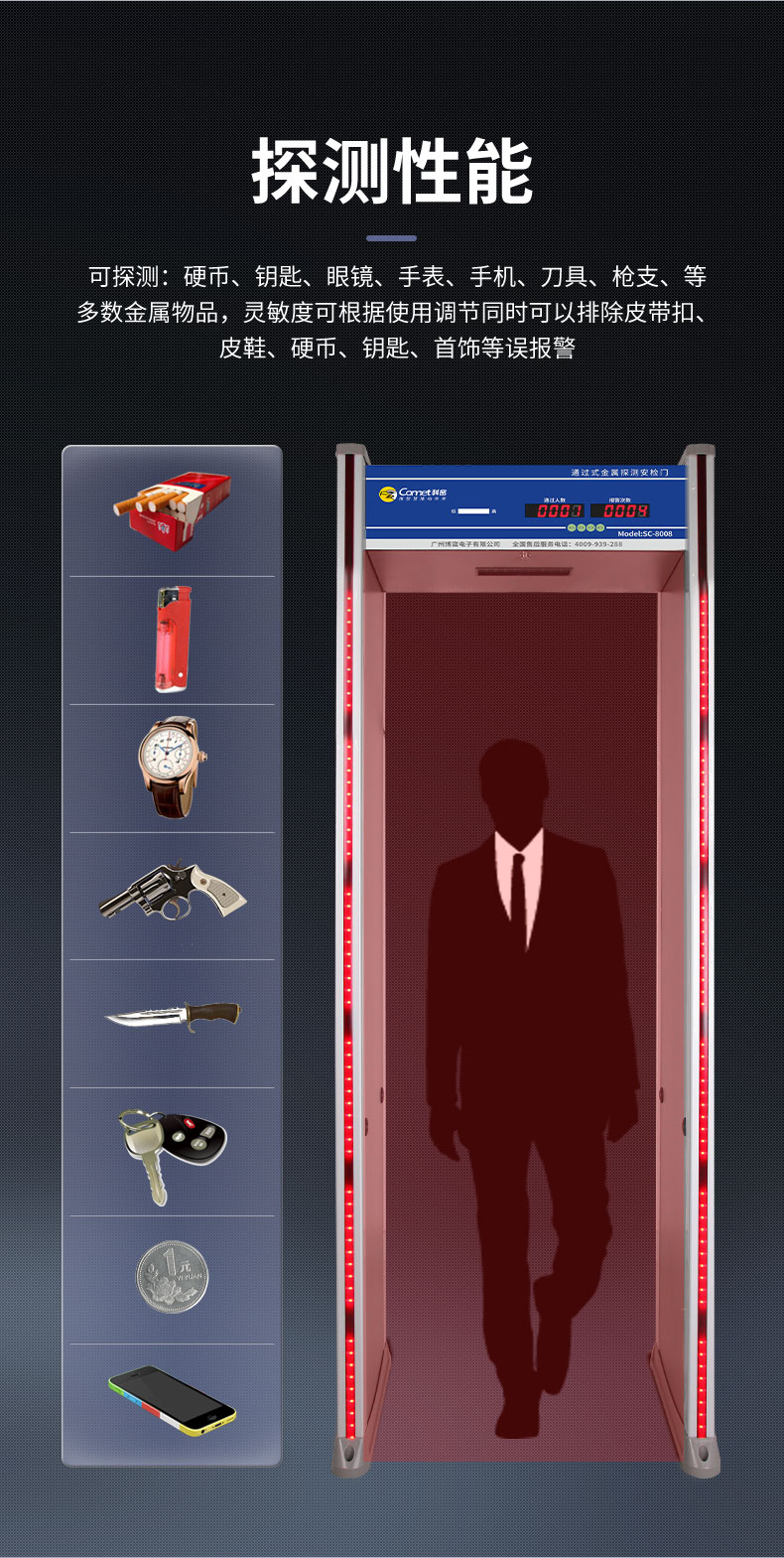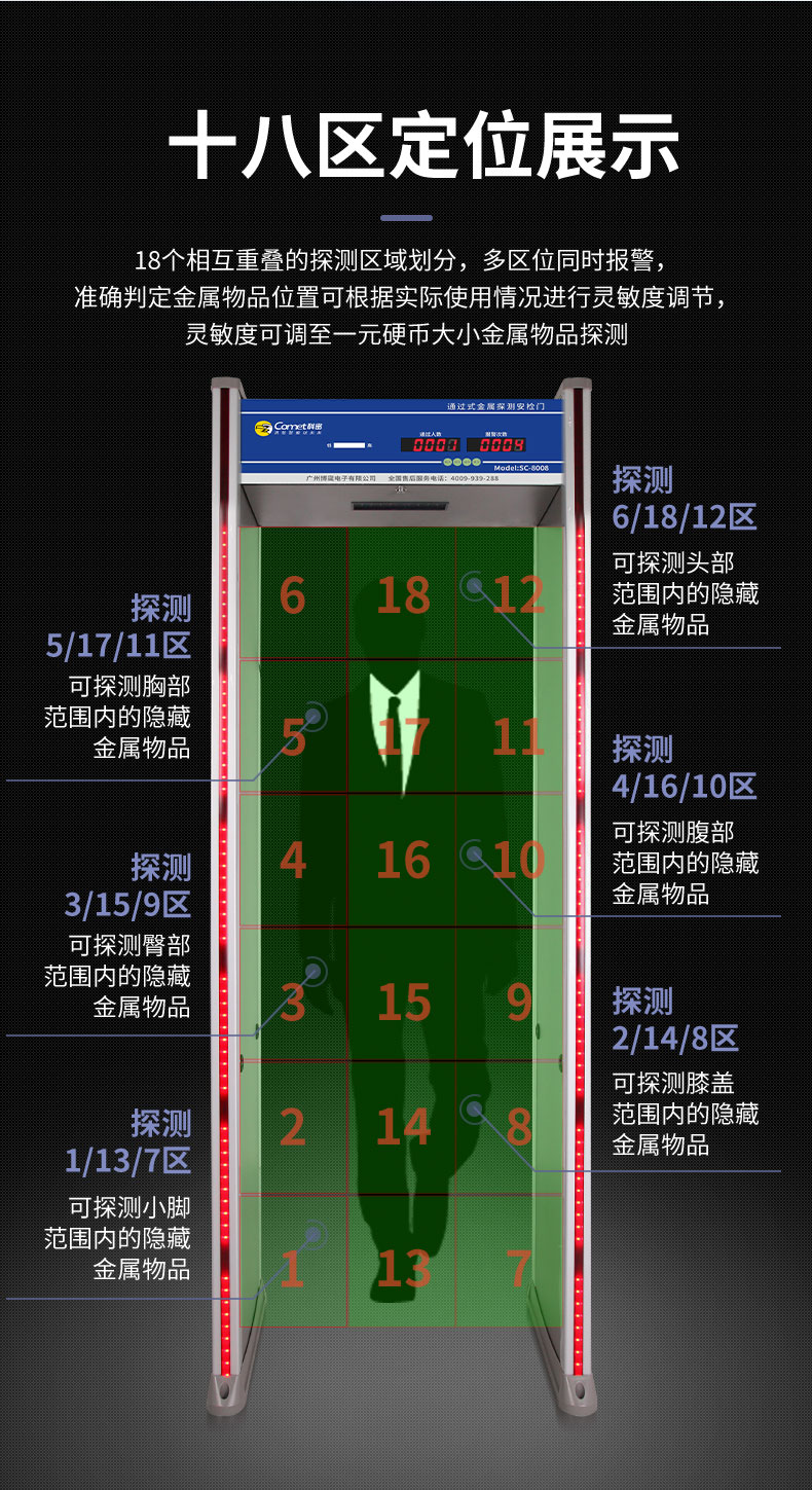 科密安检门金属探测门六区检测工厂防盗手机车站学校公检法SC-8008
