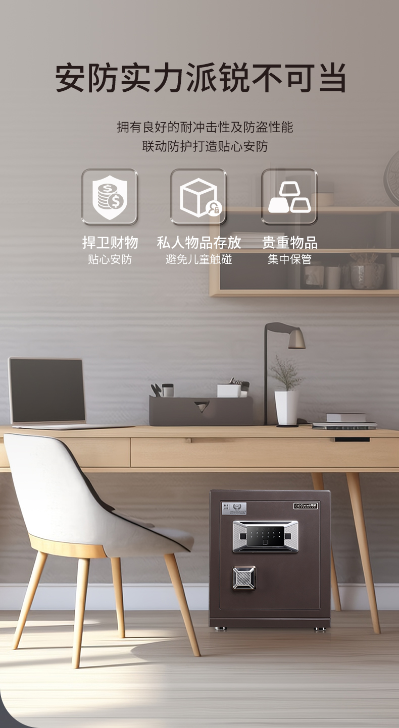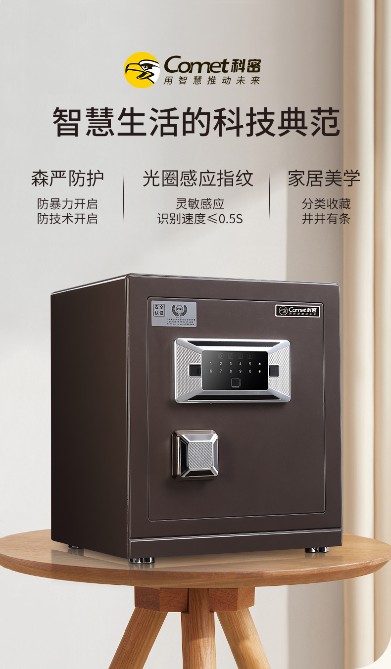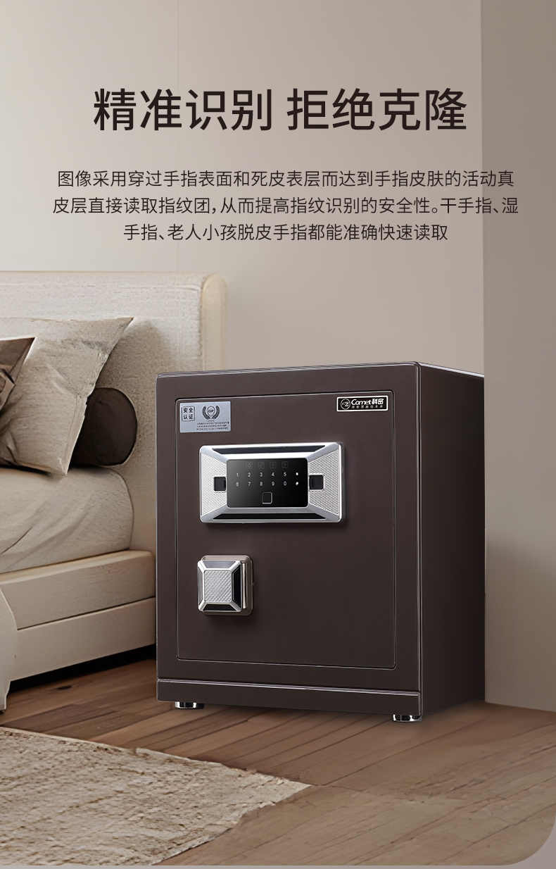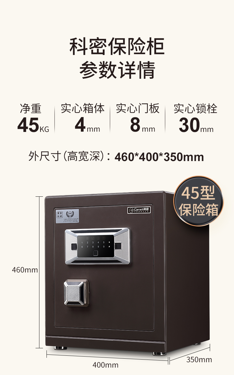 科密 FDG-45Zs全钢办公家用指纹密码保险箱 轻奢灰 45CM