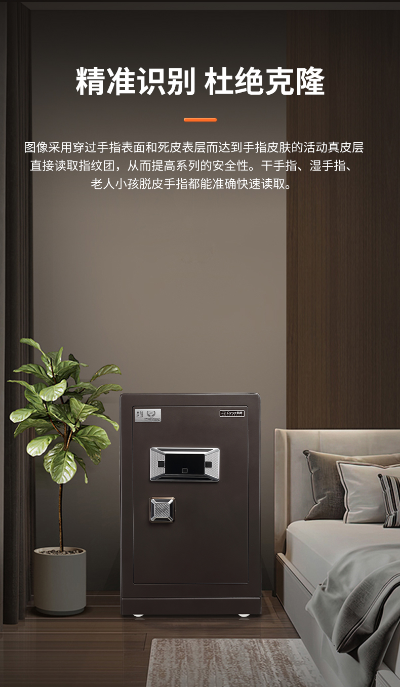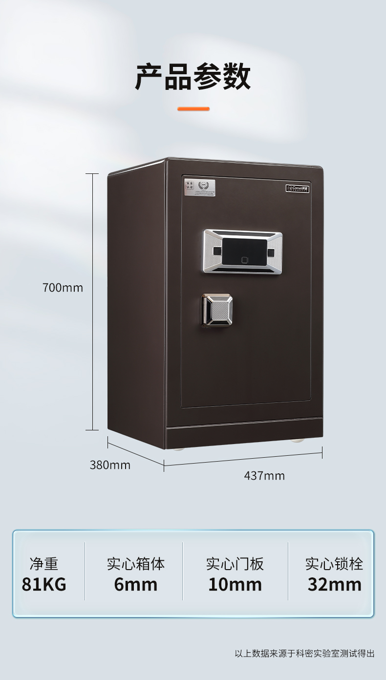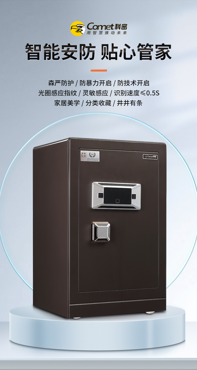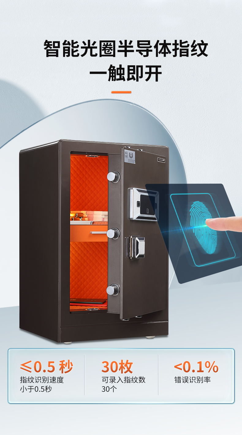 科密 FDG-70Zs全钢办公家用指纹密码保险柜轻奢灰 高70CM