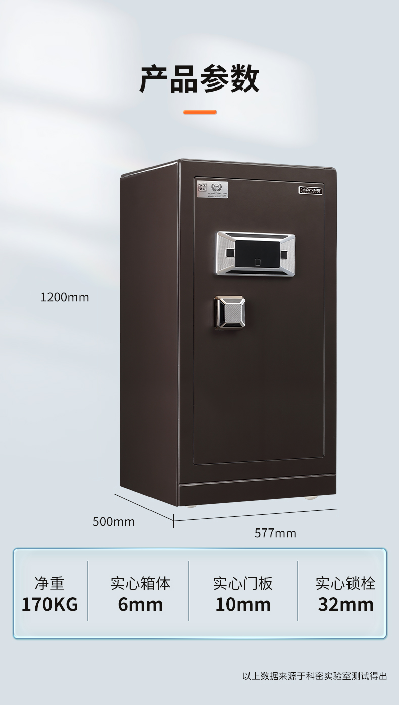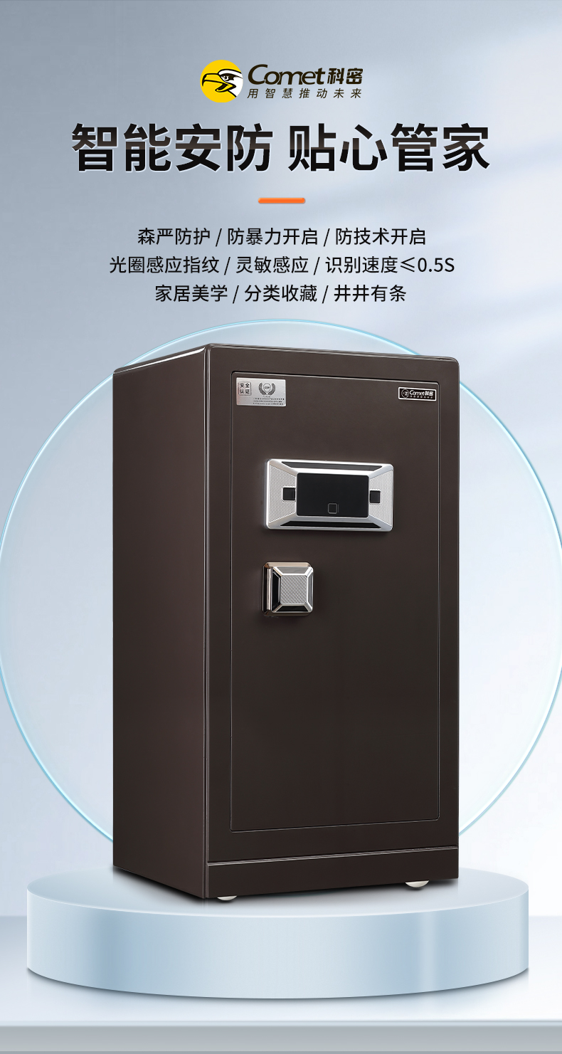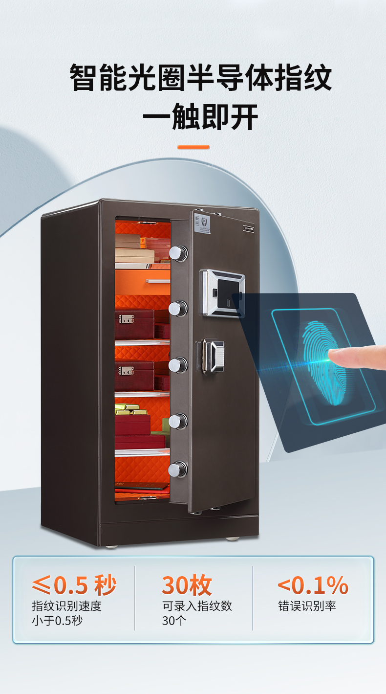 科密 FDG-120Zs全钢办公家用商用指纹密码保险柜轻奢灰 高120CM