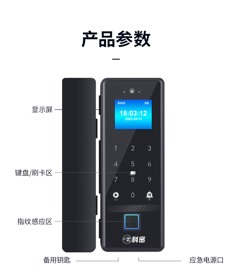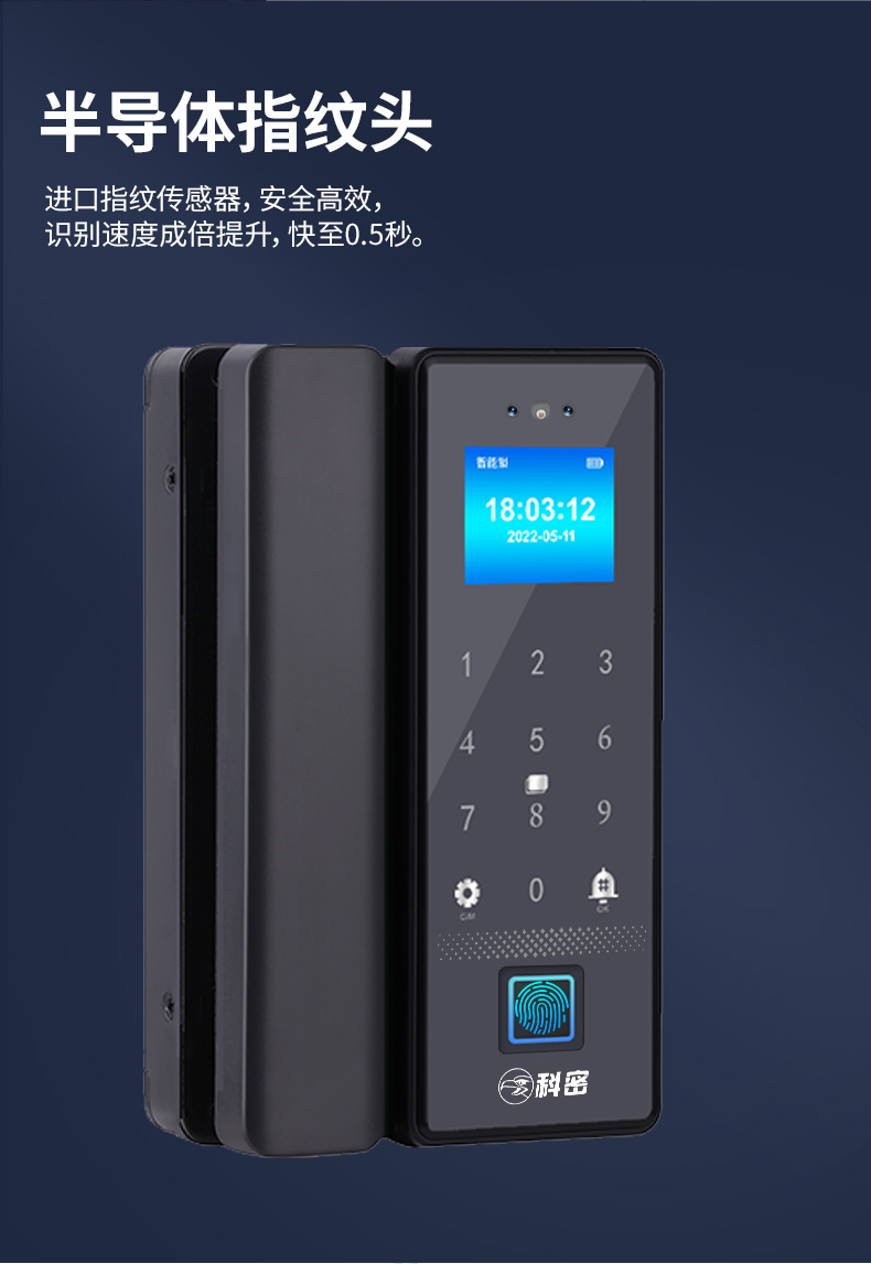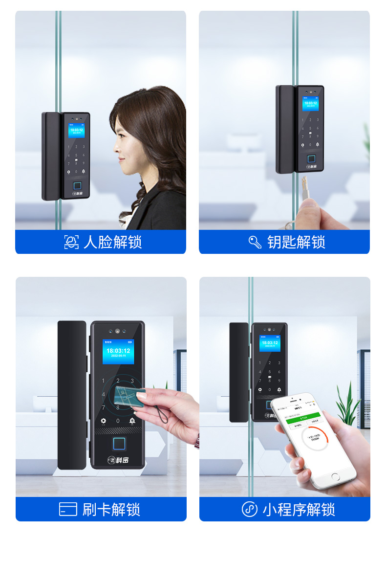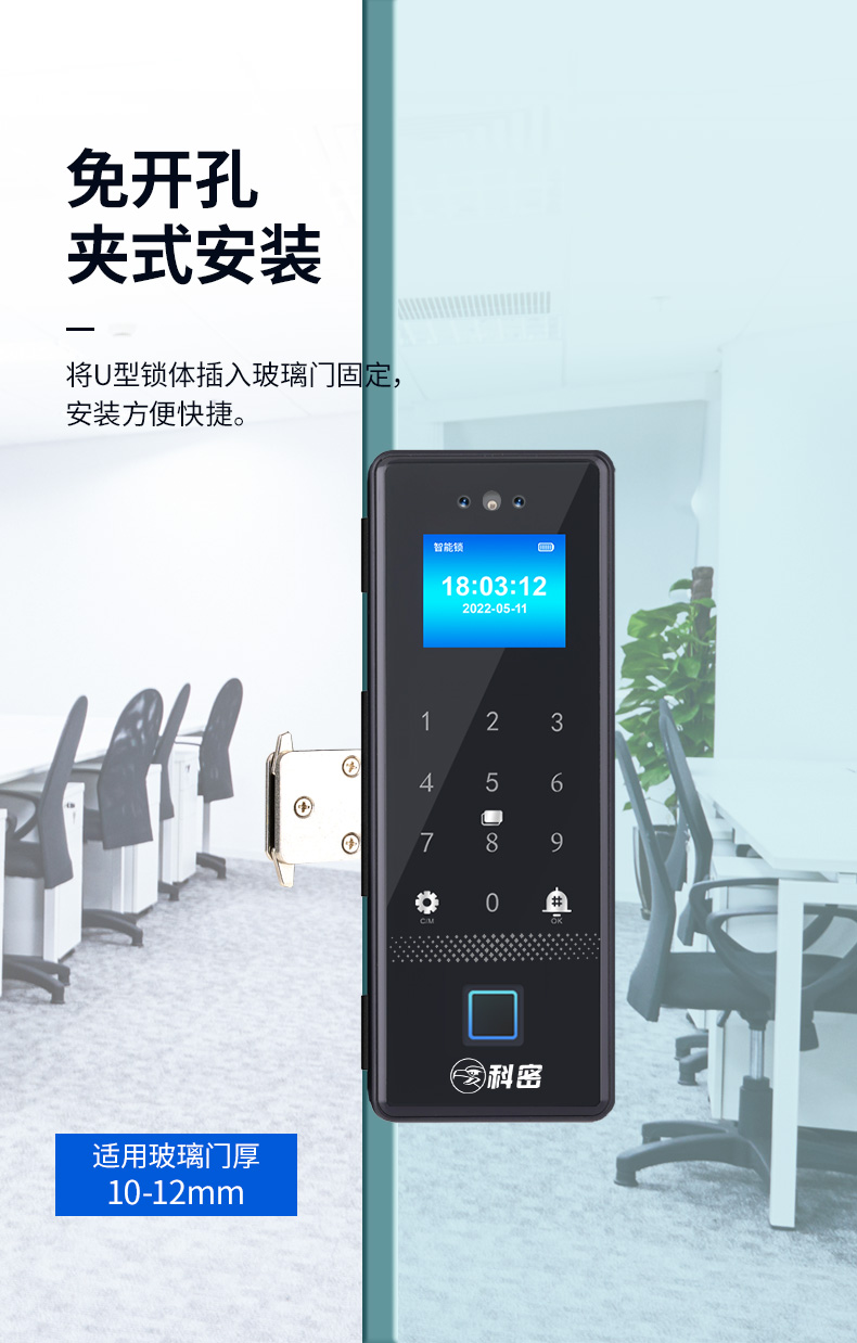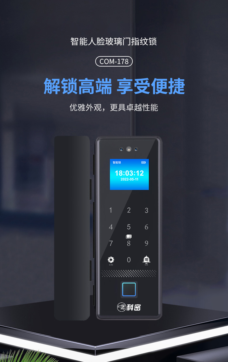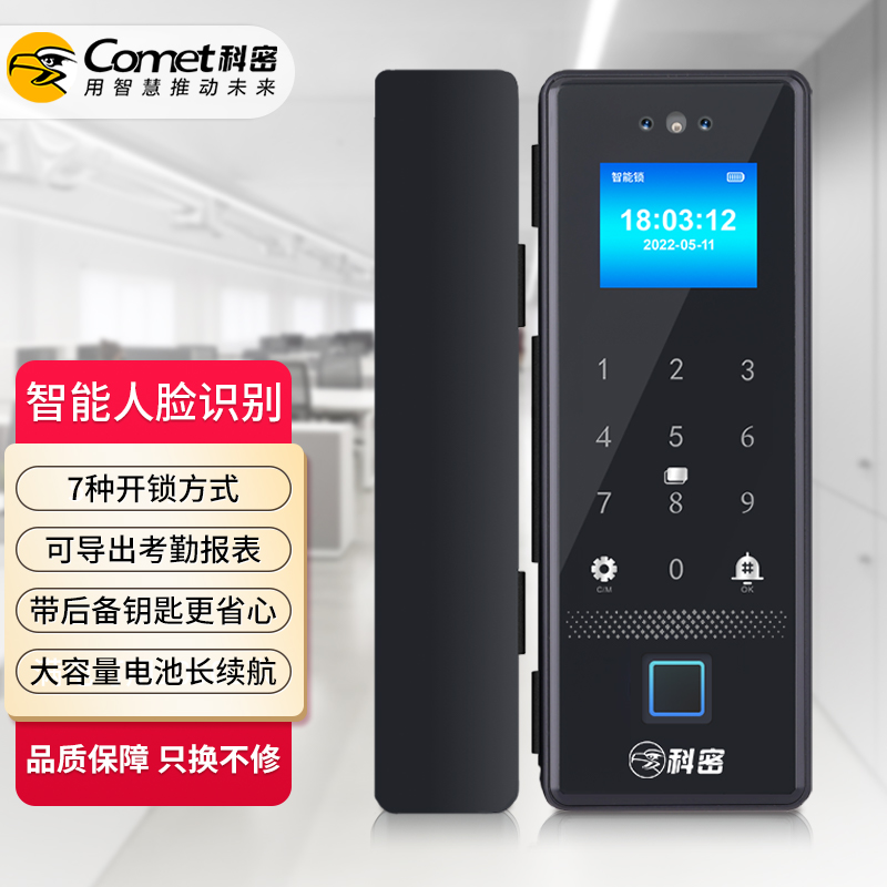 科密(comet)人脸识别玻璃门指纹锁智能电子密码锁办公室玻璃门锁免开孔小程序开锁应急钥匙COM-178A