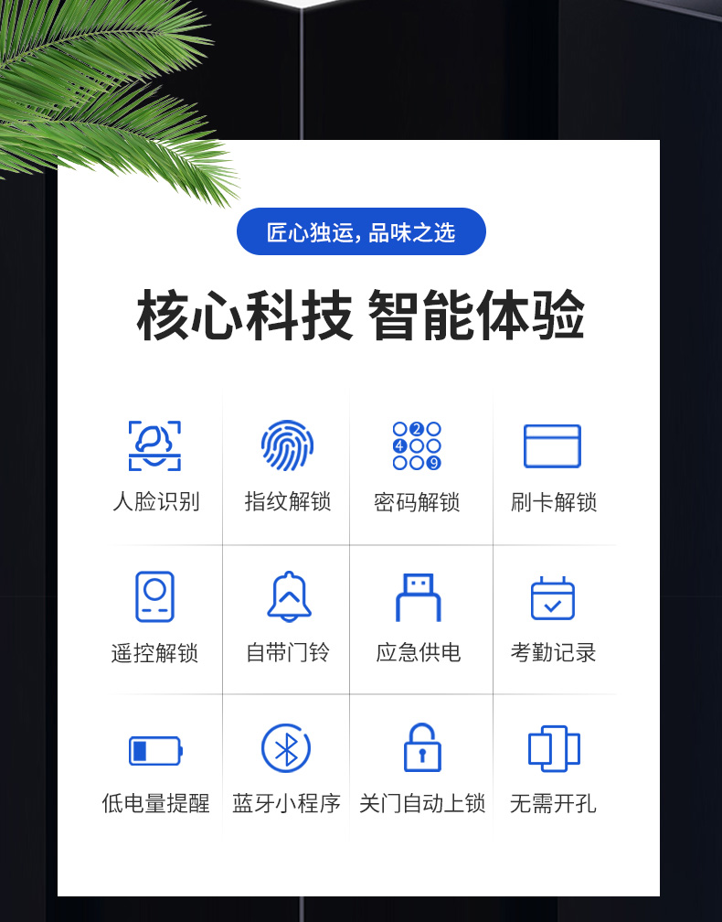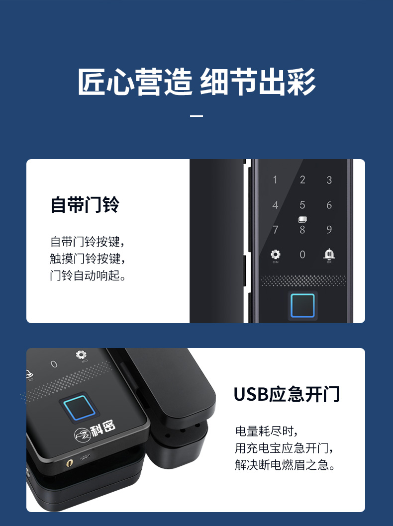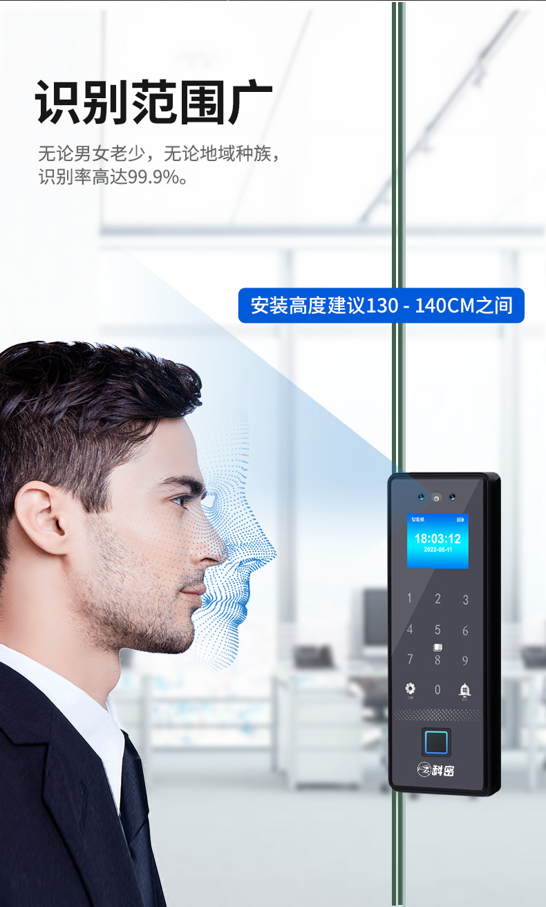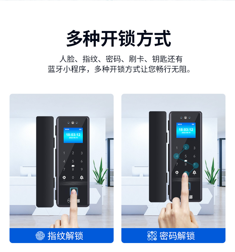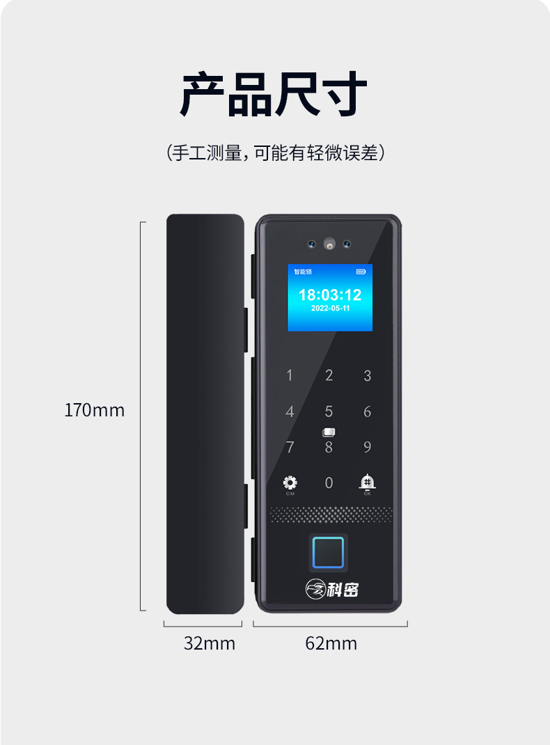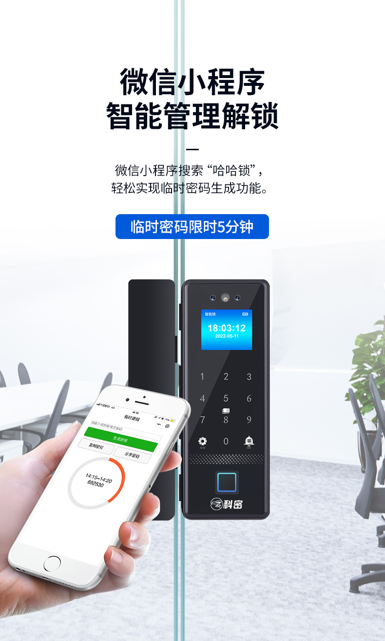 科密(comet)人脸识别玻璃门指纹锁智能电子密码锁办公室玻璃门锁免开孔小程序开锁应急钥匙COM-178A