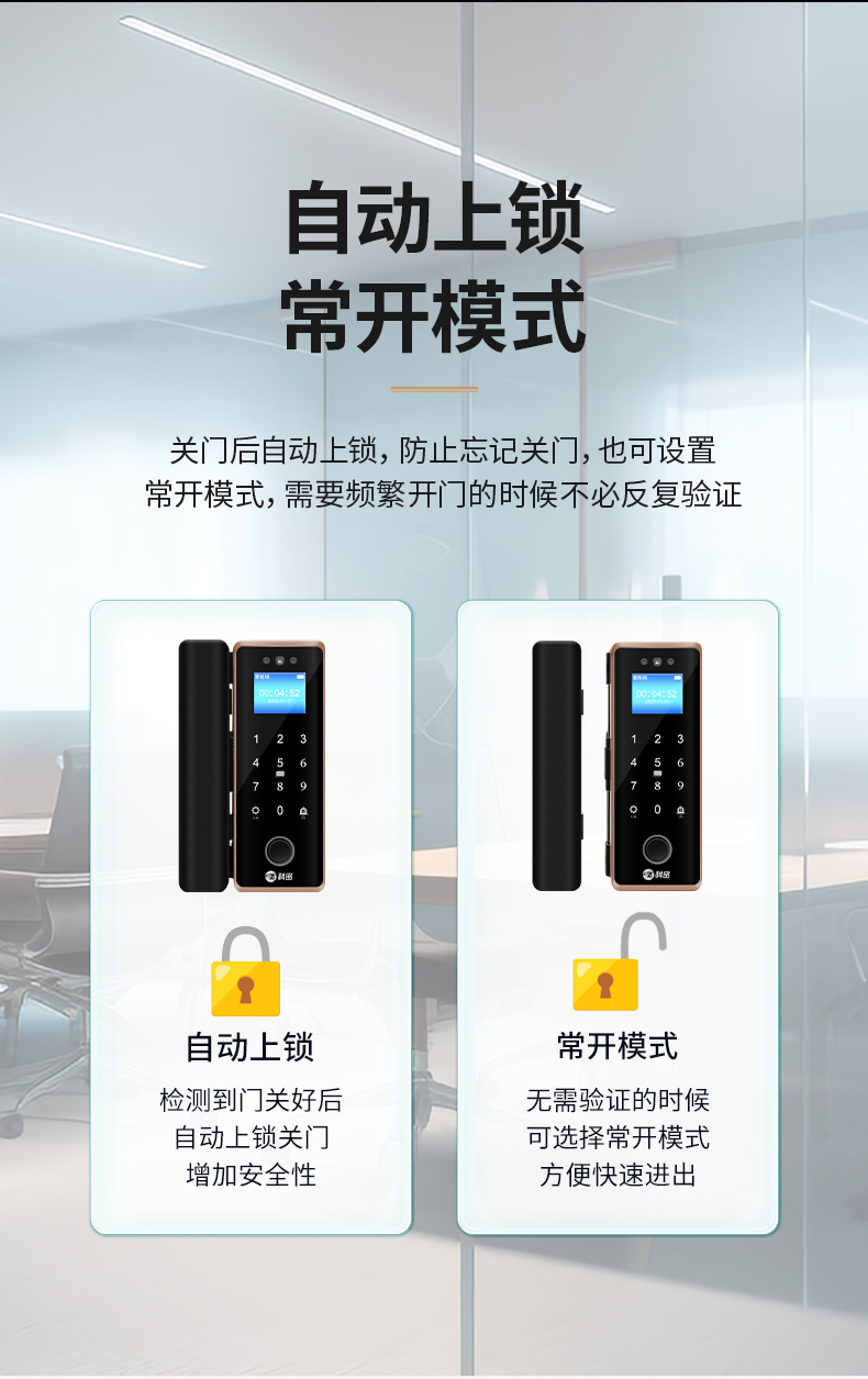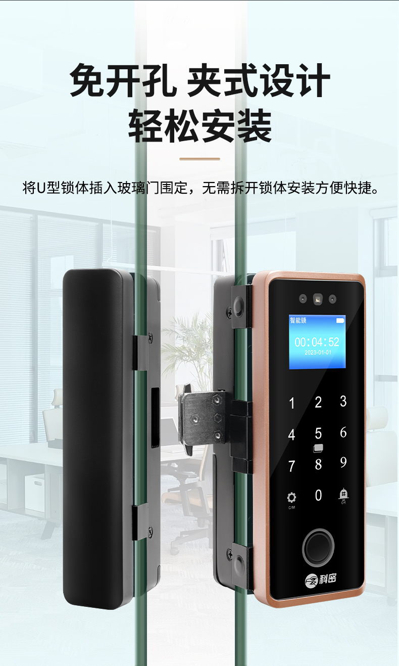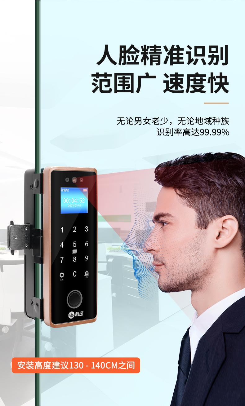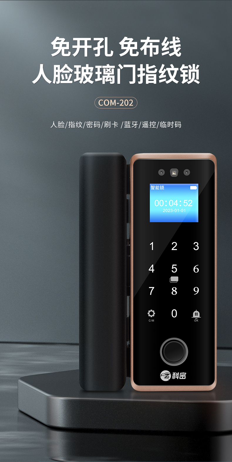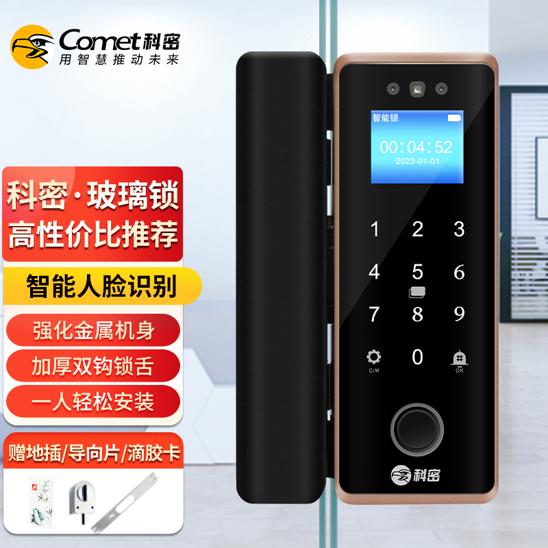 科密(comet)人脸识别玻璃门指纹锁门禁智能电子密码锁办公室玻璃门锁小程序开锁 金属材质COM-202