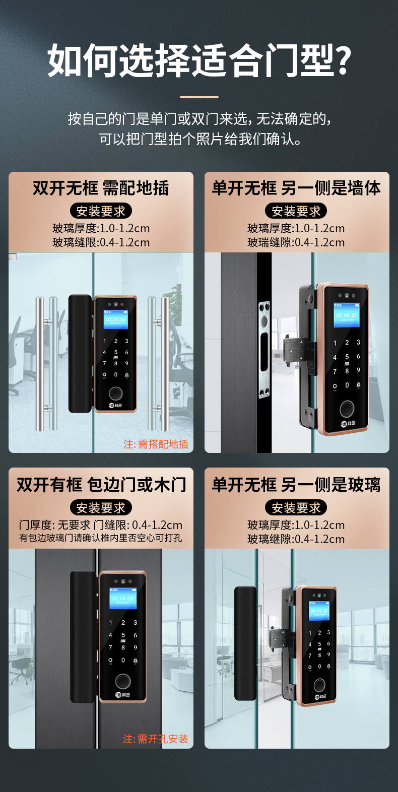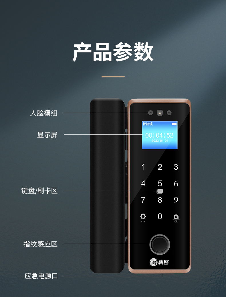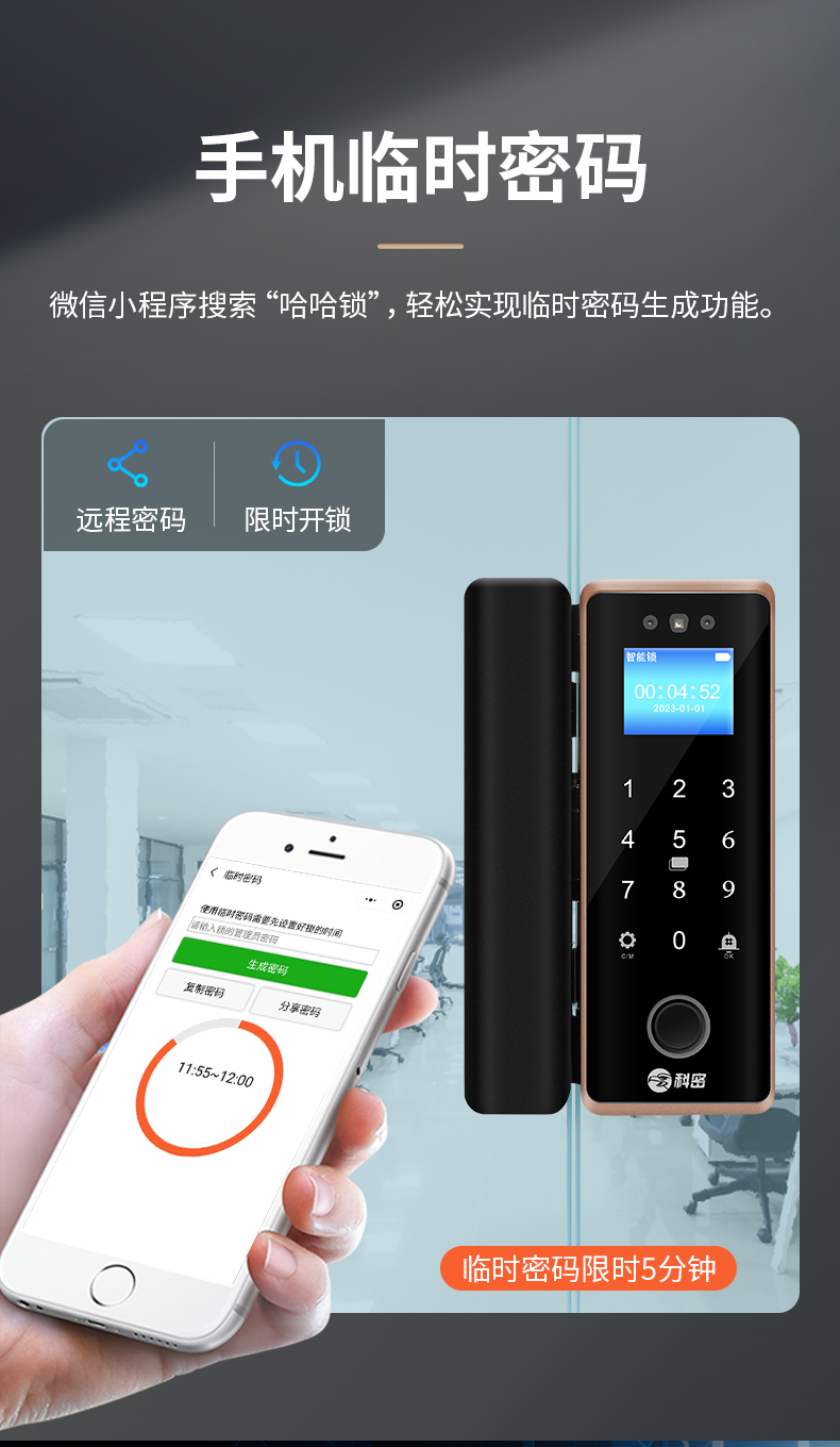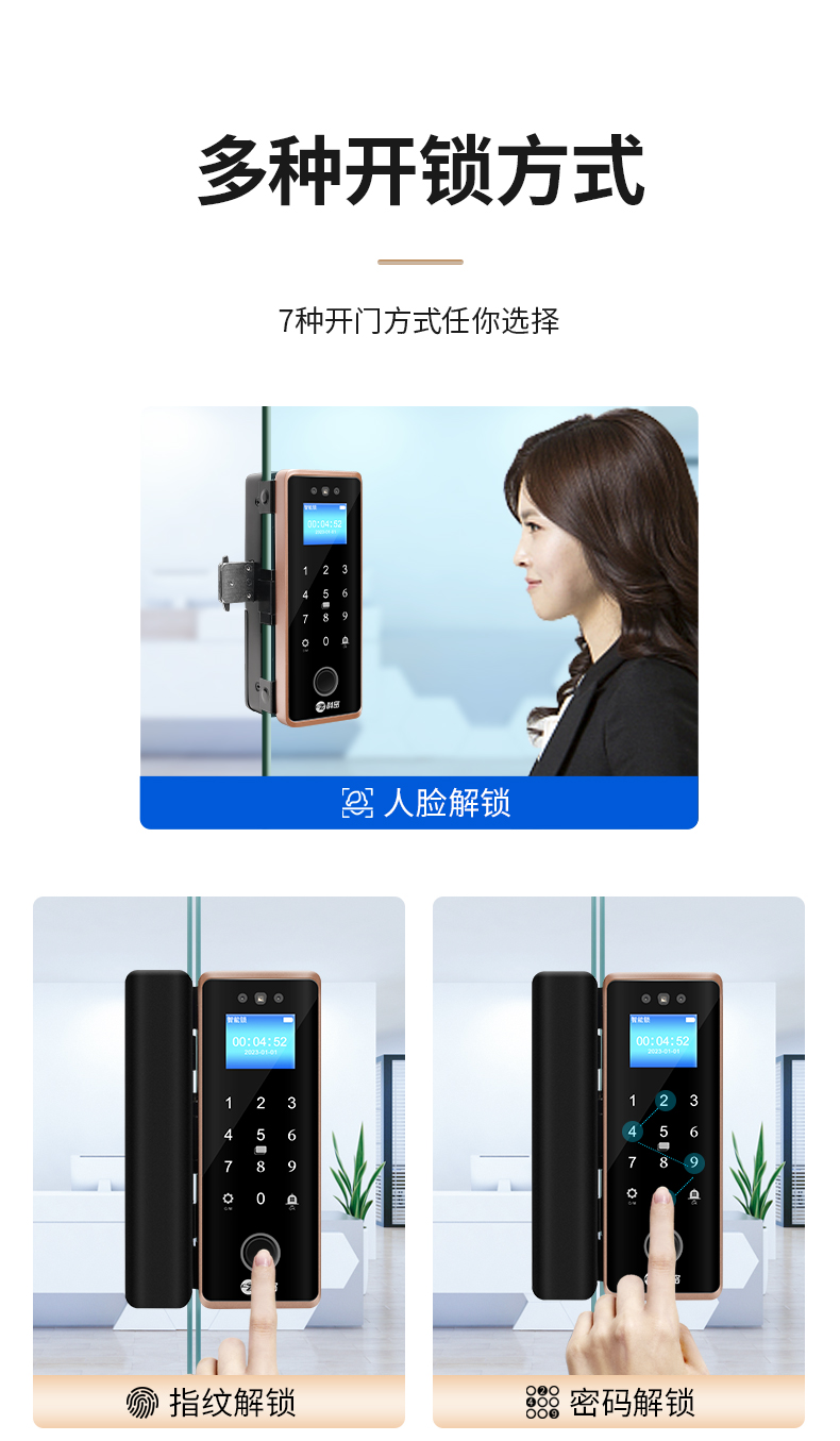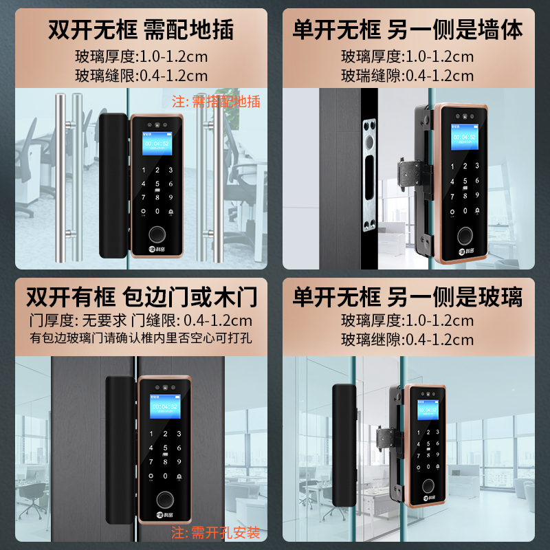 科密(comet)人脸识别玻璃门指纹锁门禁智能电子密码锁办公室玻璃门锁小程序开锁 金属材质COM-202