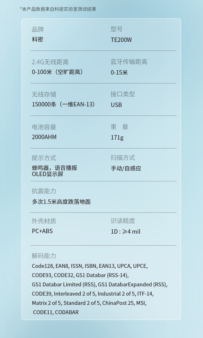 科密(comet)扫码枪无线扫描枪条码枪扫描器一维激光蓝牙语音提示 图书仓储商超物流盘点 商品数据采集TC200W