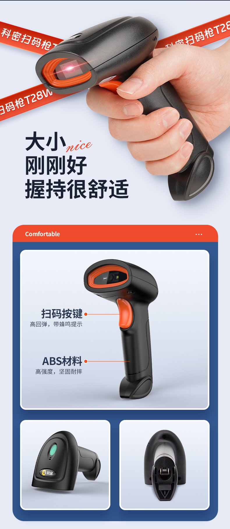 科密T28W无线扫码枪条码扫描器超市手机支付宝微信收银二维码扫描枪快递物流仓储把枪有线医保电子凭证扫码器