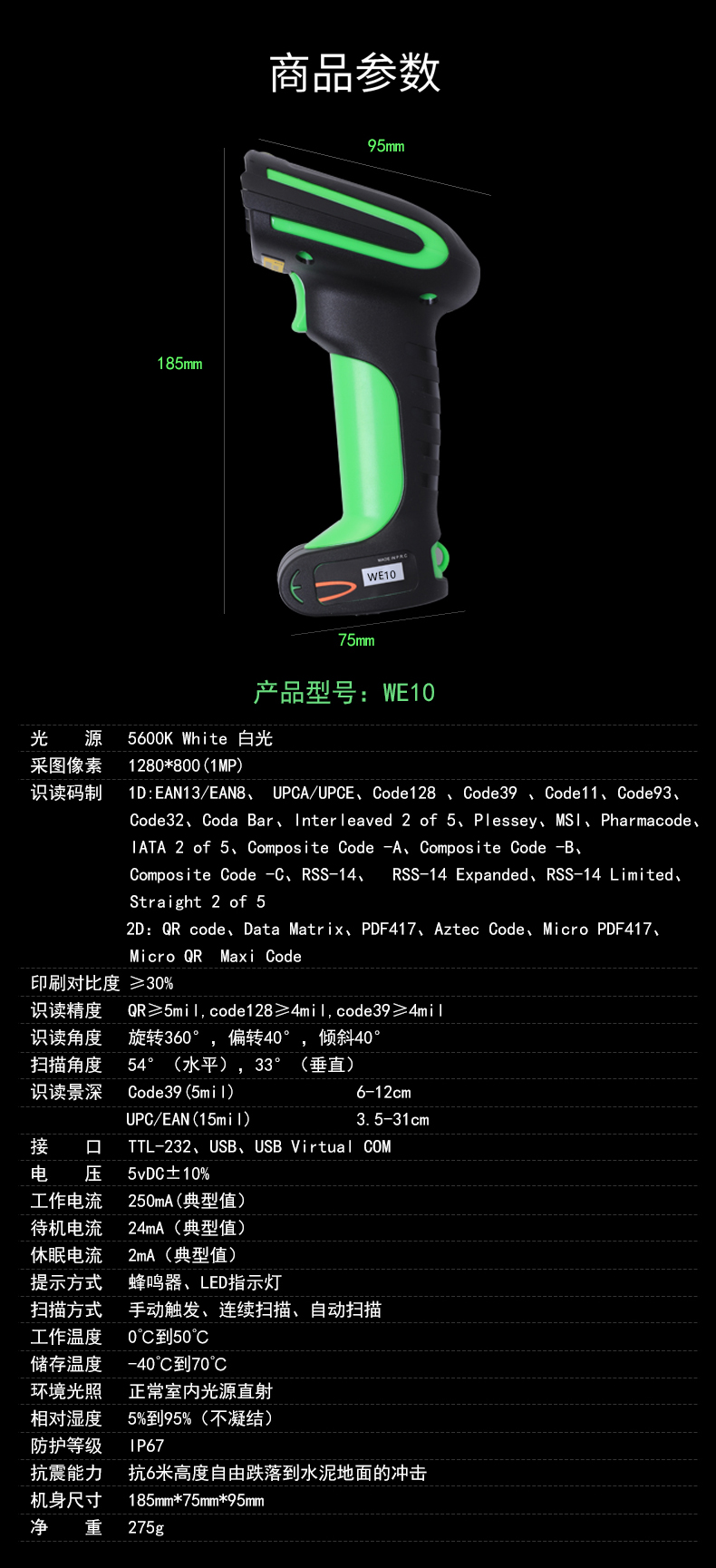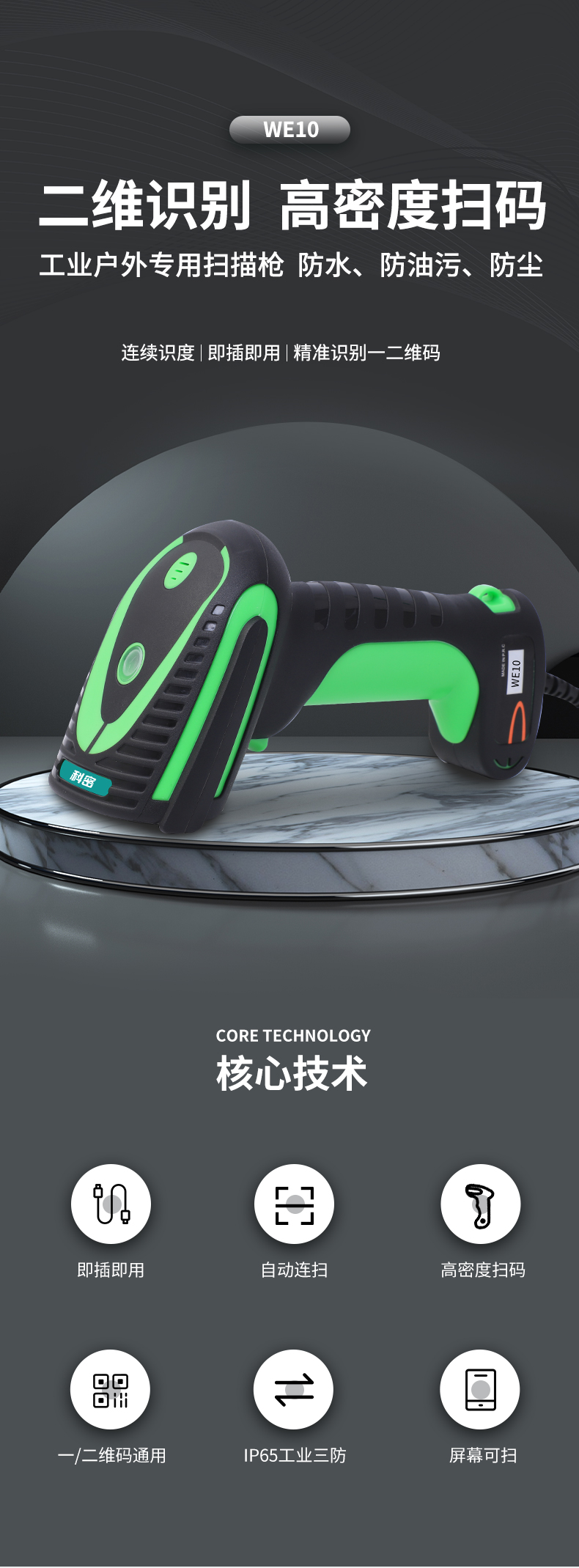 科密(comet)WE10 有线一二维码扫描枪条码枪扫码枪 工业级防水防尘防油污 金属DPM码 支持国产系统