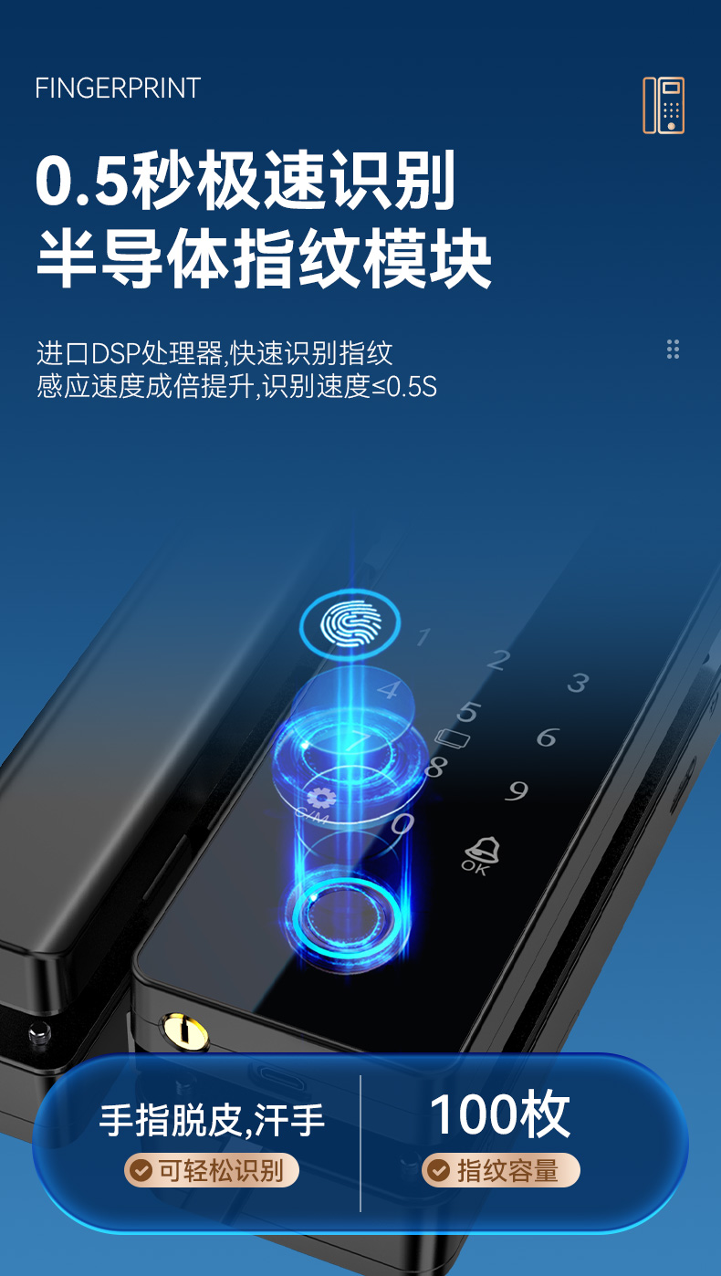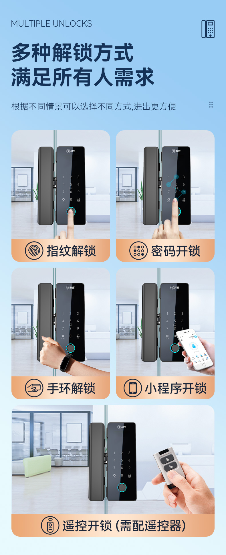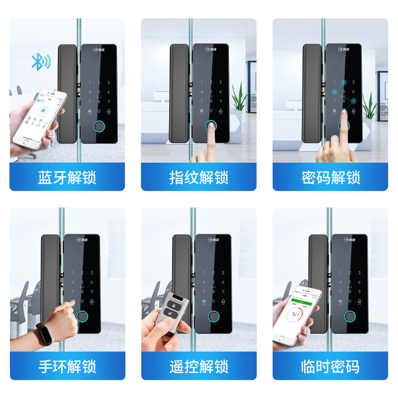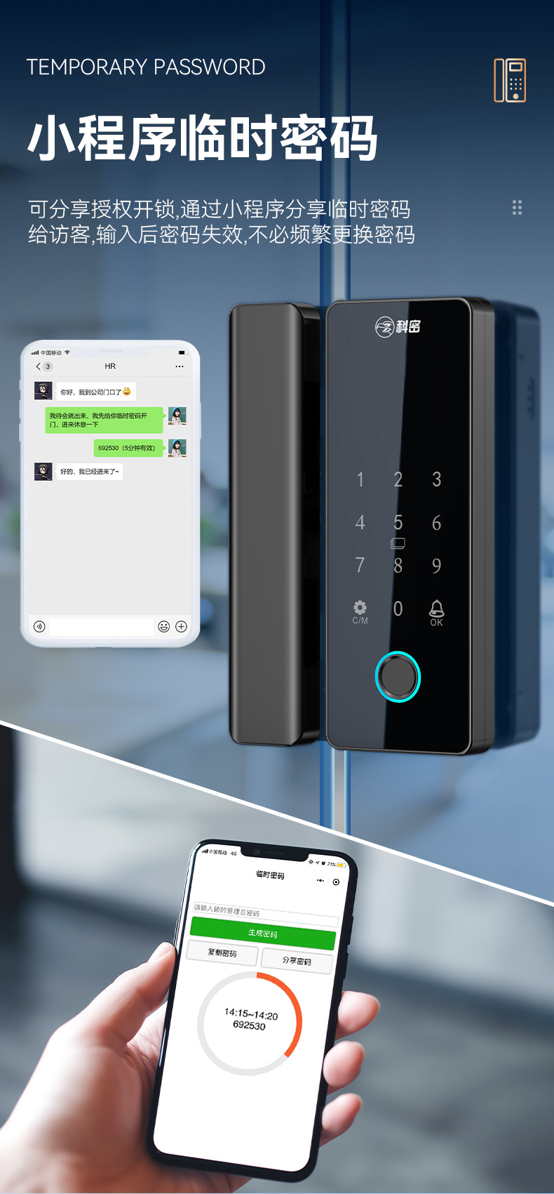 科密TOM-170玻璃门密码锁有框无框单双开门办公室免开孔智能电子指纹门锁