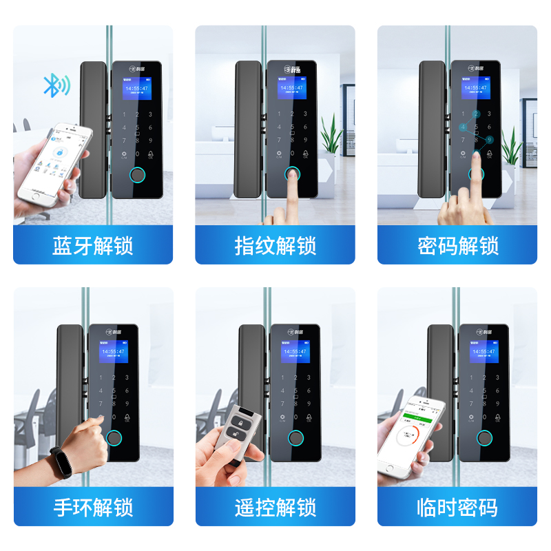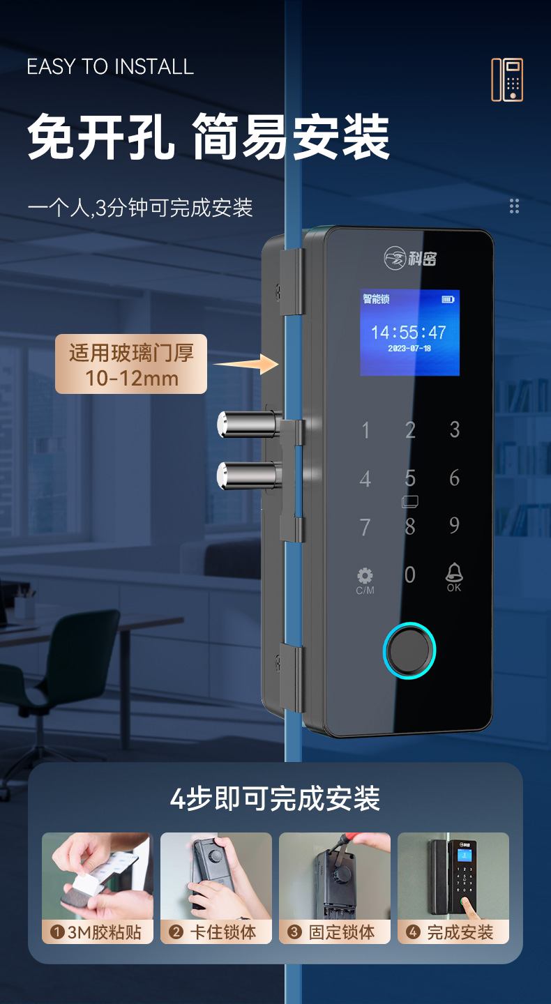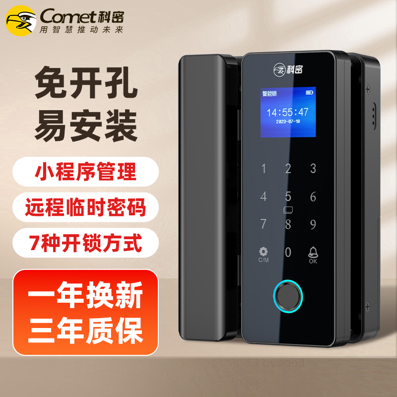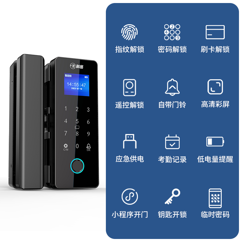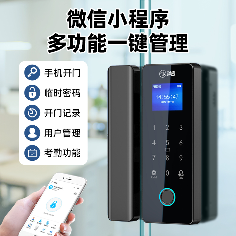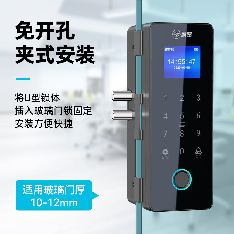 科密TOM-171玻璃门密码锁有框无框单双开门办公室免开孔智能电子指纹门锁