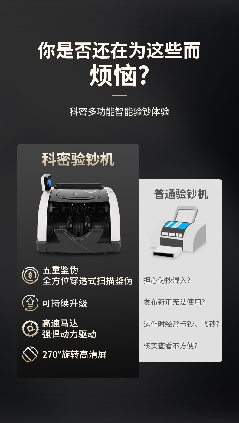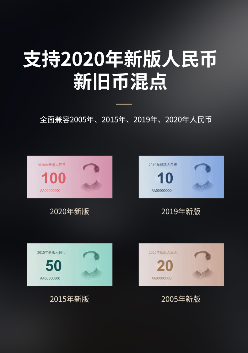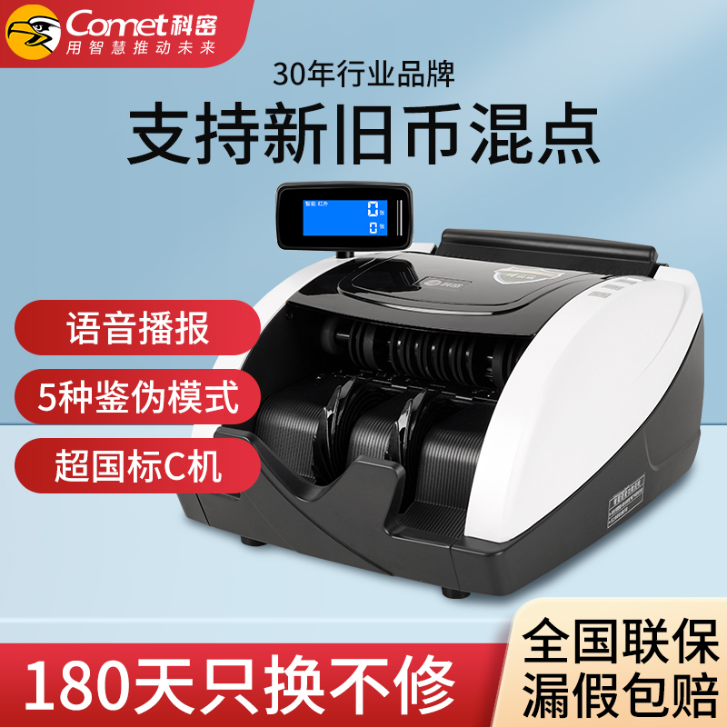 科密(comet)验钞点钞机支持新版人民币 小型家用商用收银支付 新旧混点语音便携双屏C级数钞机