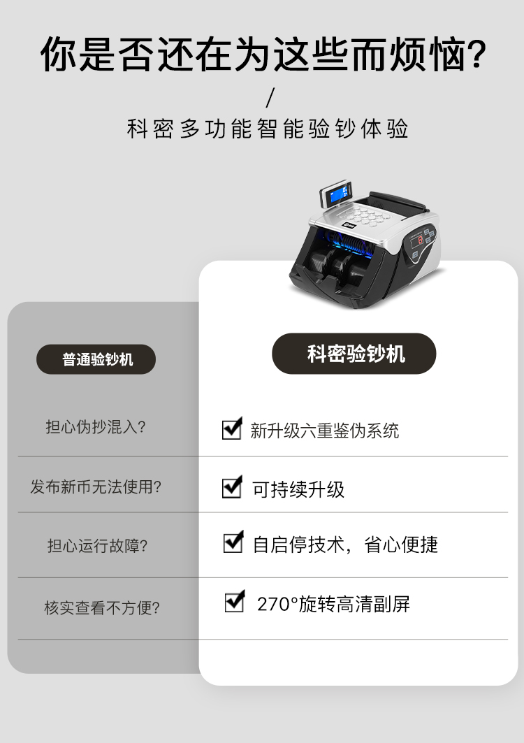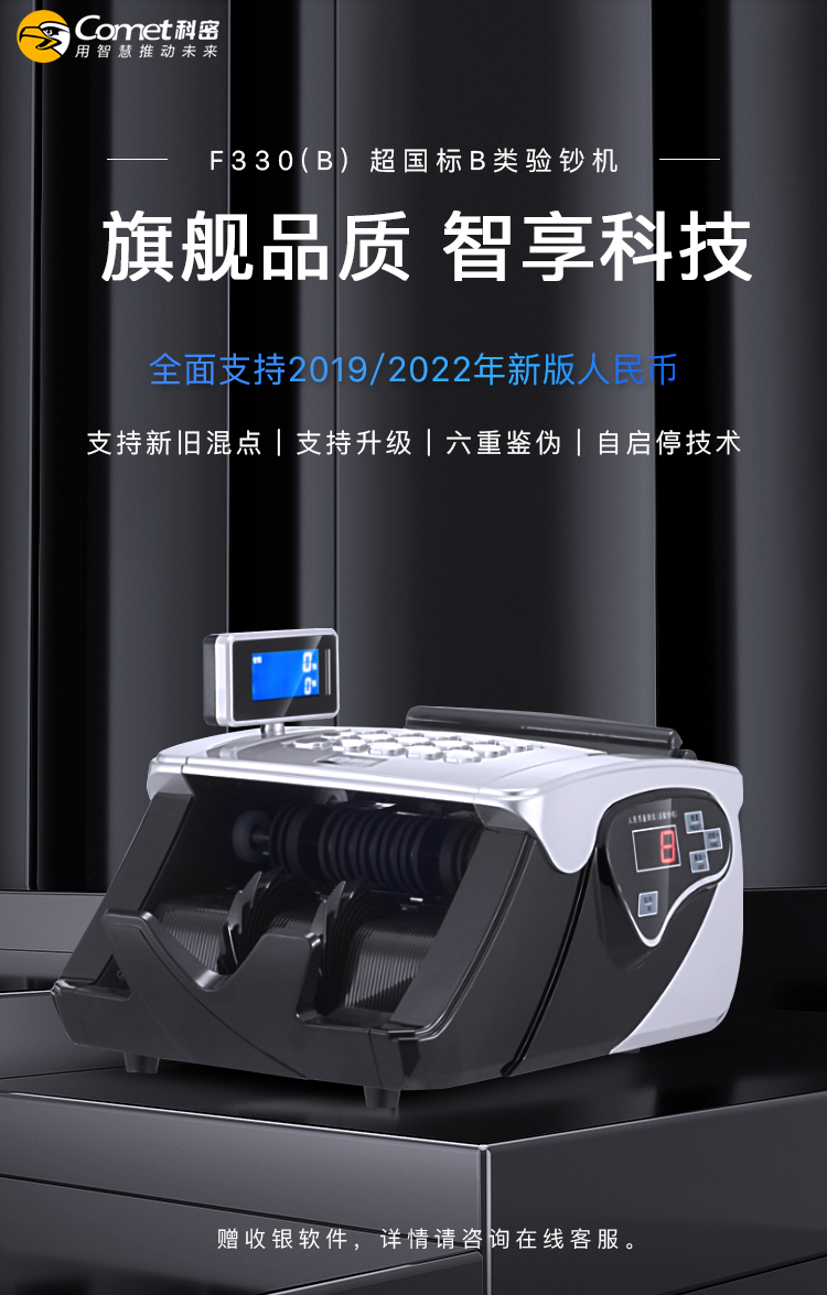 科密(comet)新版人民币验钞点钞机 国标B类点钞机银行专用 智能双屏语音新旧币混点 F330B