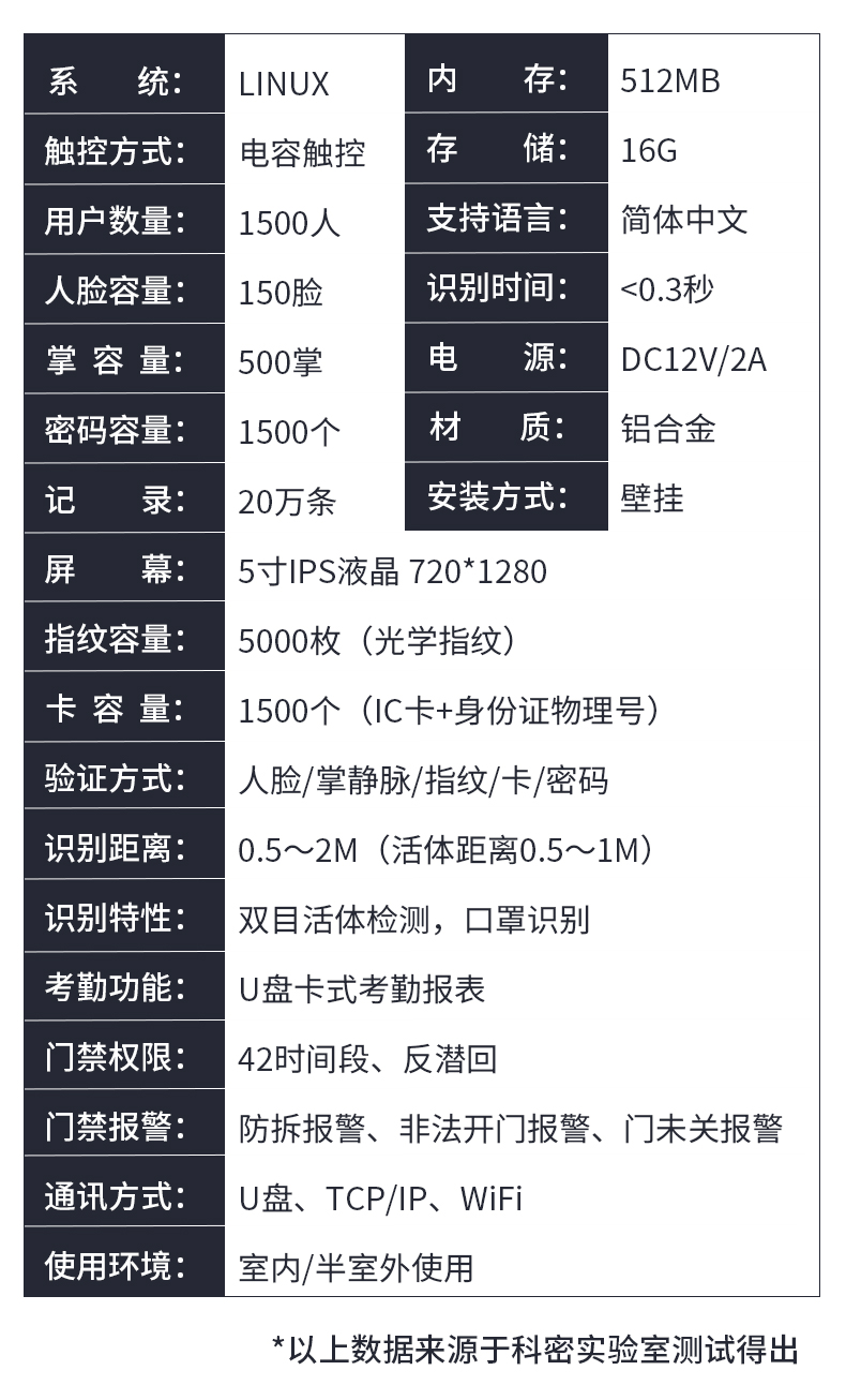 科密 人脸指纹识别考勤机打卡机 门禁一体机 人脸掌静脉指纹密码刷卡一卡通门禁一体机 MF-910C
