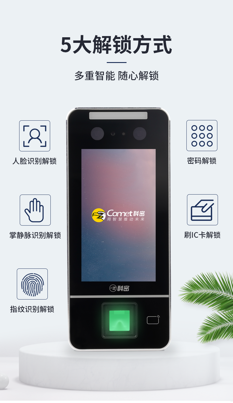 科密 MF-920C 人脸指纹识别考勤机 打卡机 门禁一体机 WIFI连接人脸掌静脉指纹密码刷卡一卡通 门禁一体机 国产品牌