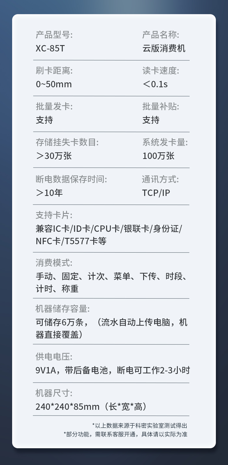 XC-85T云版科密消费机