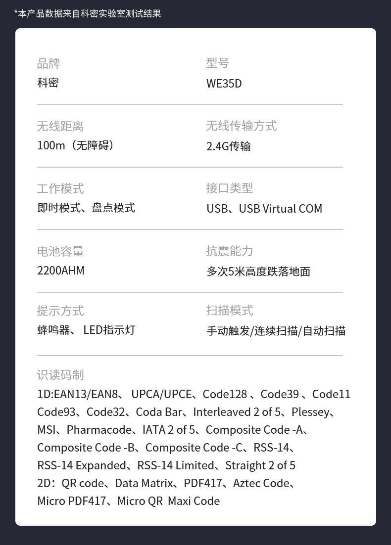 科密(comet) WE35D 无线一二维码带座条码枪扫描枪扫码枪 工业防水防尘防油污金属DPM码 支持国产系统