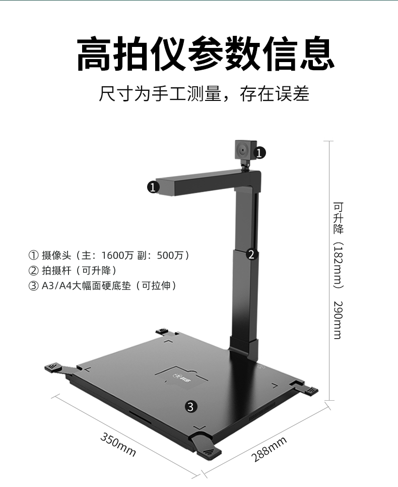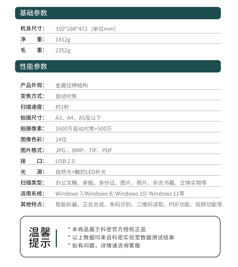 科密 D4313 高拍仪 1600万+500万高清像素 A3A4文件资料合同OCR扫描仪