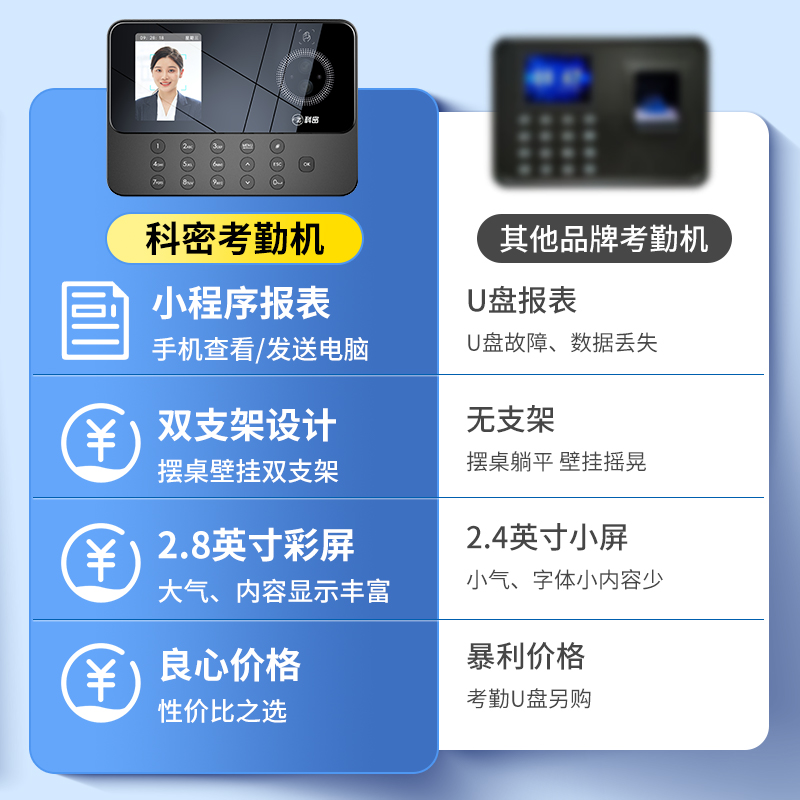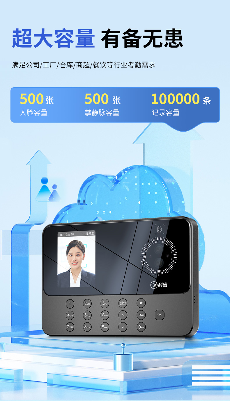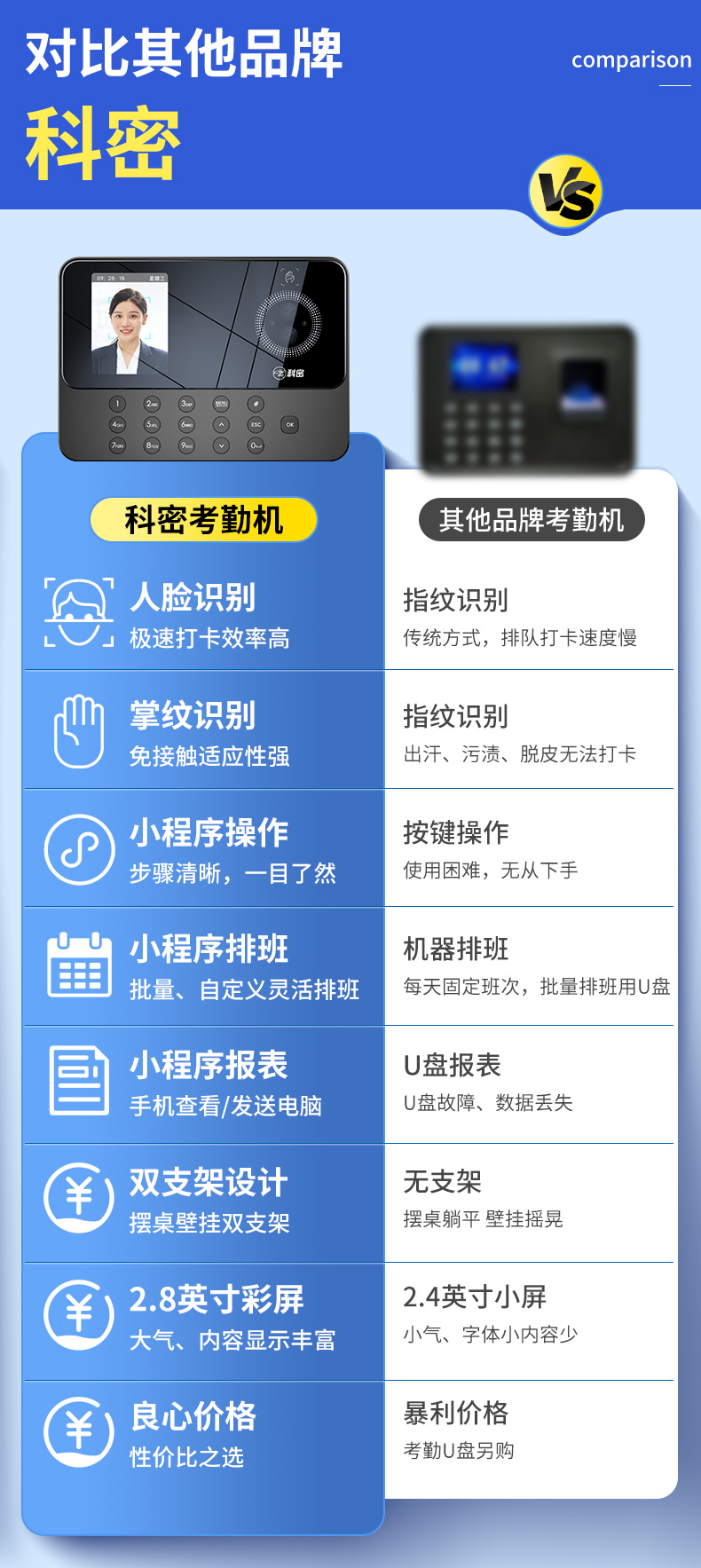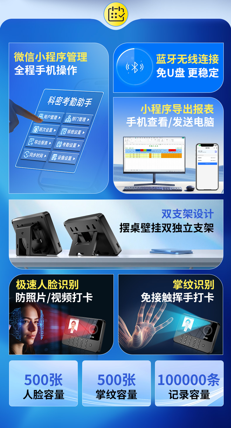 科密(comet)考勤机 打卡机人脸+掌纹识别考勤机 蓝牙连接 小程序管理 自动生成报表PV10W