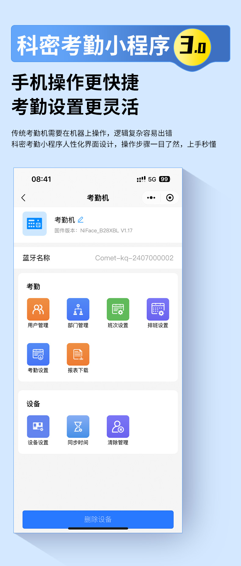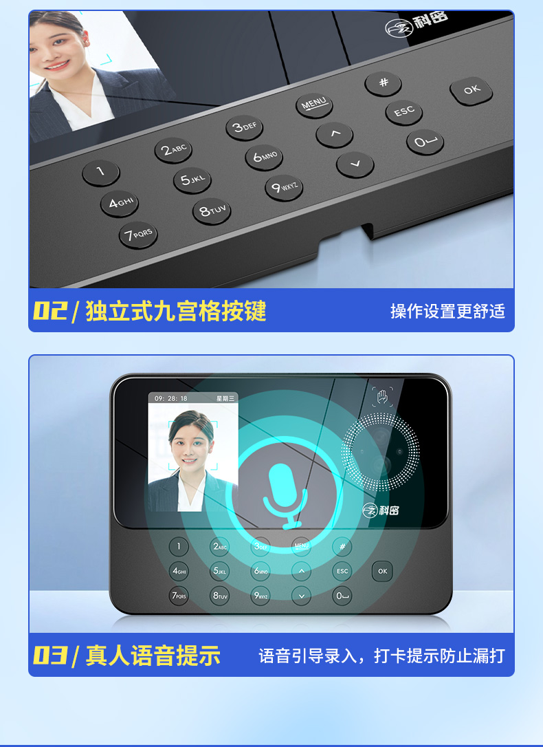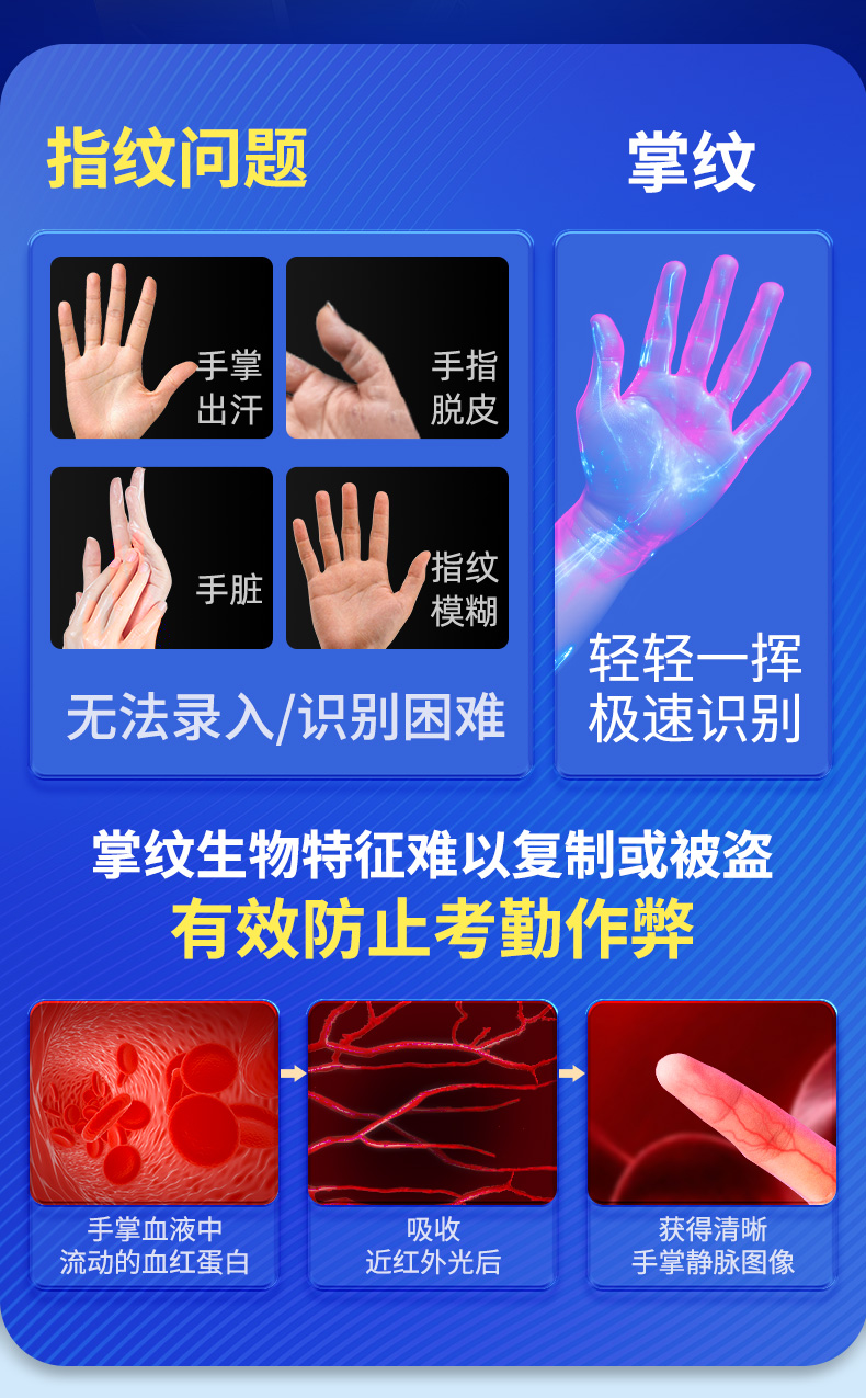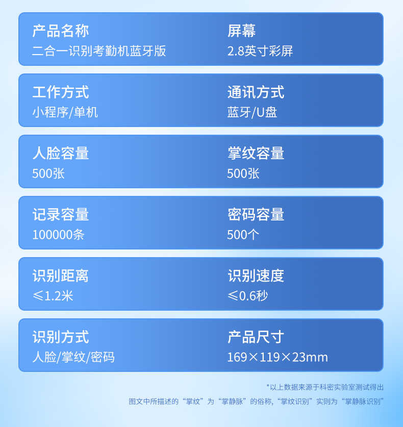 科密(comet)考勤机 打卡机人脸+掌纹识别考勤机 蓝牙连接 小程序管理 自动生成报表PV10W