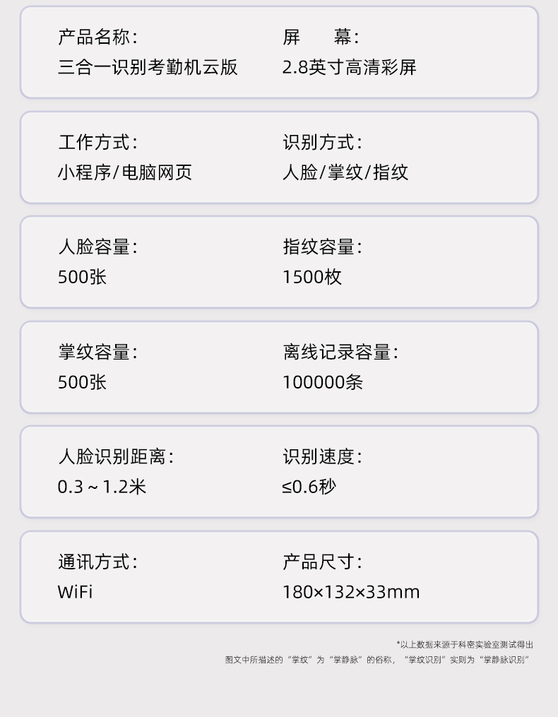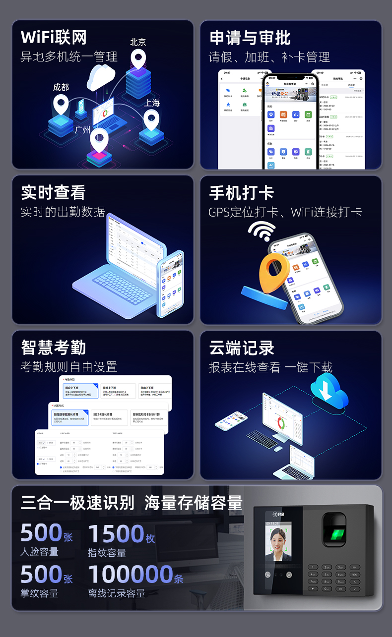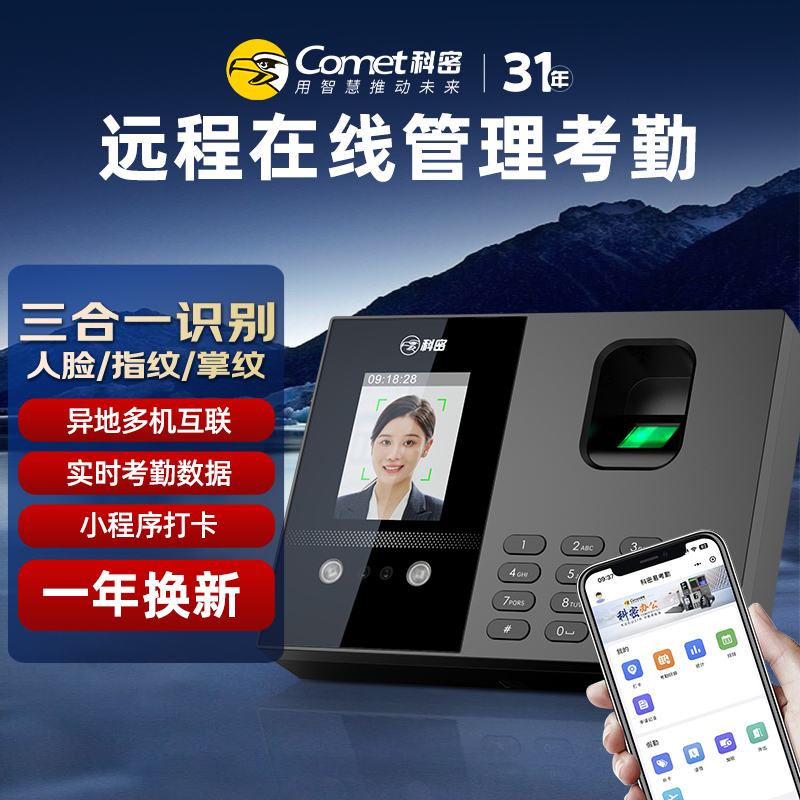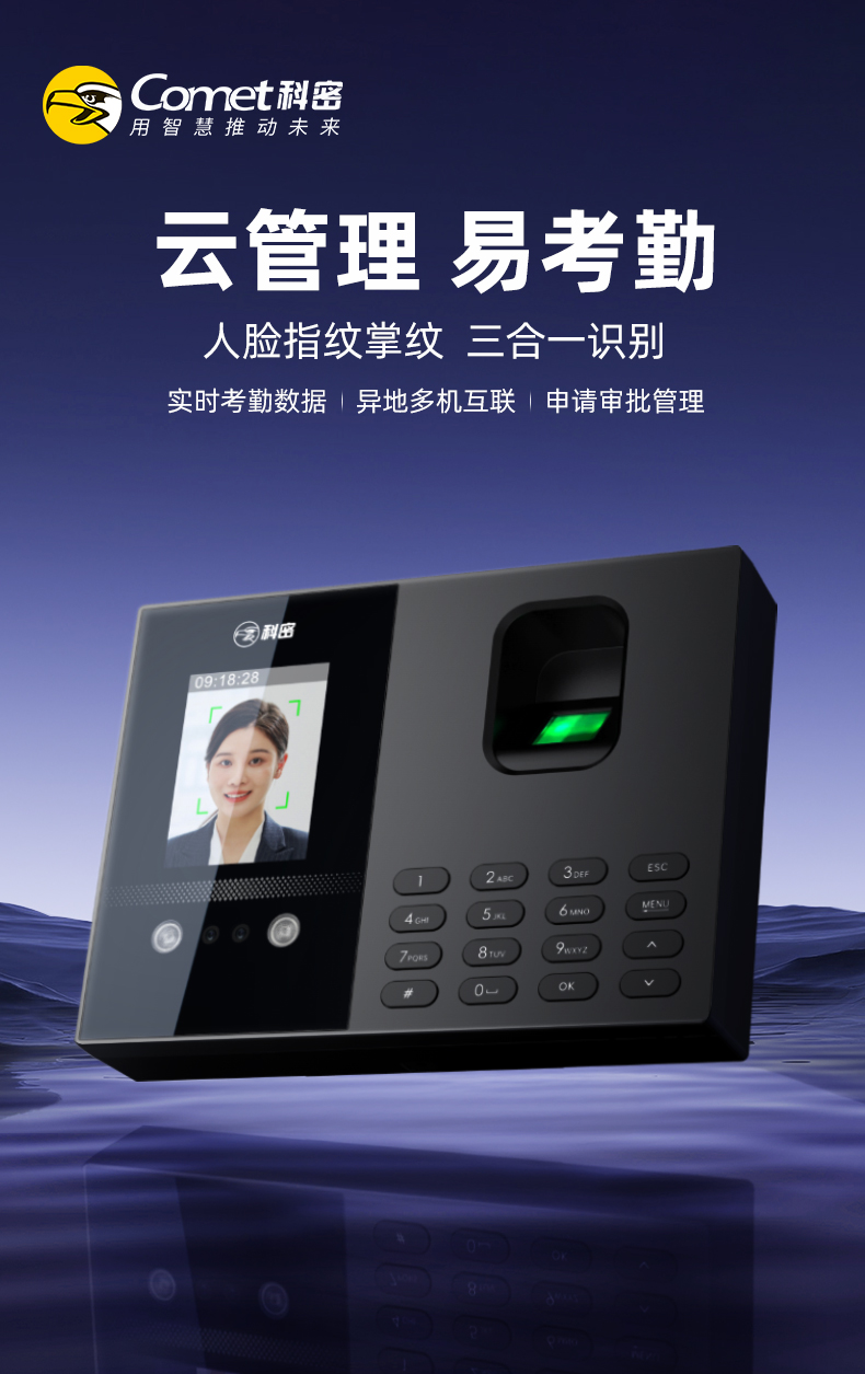 科密(comet)智能云考勤机 打卡机人脸+指纹+掌纹识别考勤机 APP在线管理 实时查看考勤 FC02C