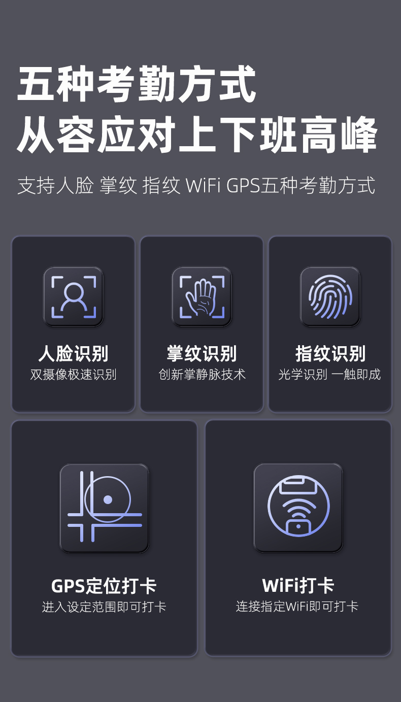 FC02C人脸+指纹+掌纹识别考勤机(网络版)