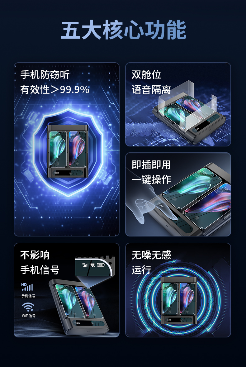 科密手机安全仓防监听防录音防手机木马远程实时监听收音RPMSE 黑色