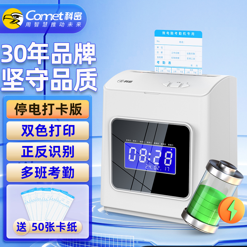 科密(comet)打卡机考勤机卡钟纸质考勤钟音乐报时快速打卡微电脑自动吸退移位 可停电打卡款 ET-3318D