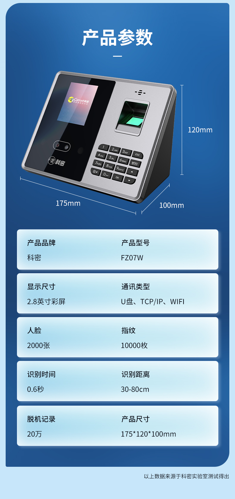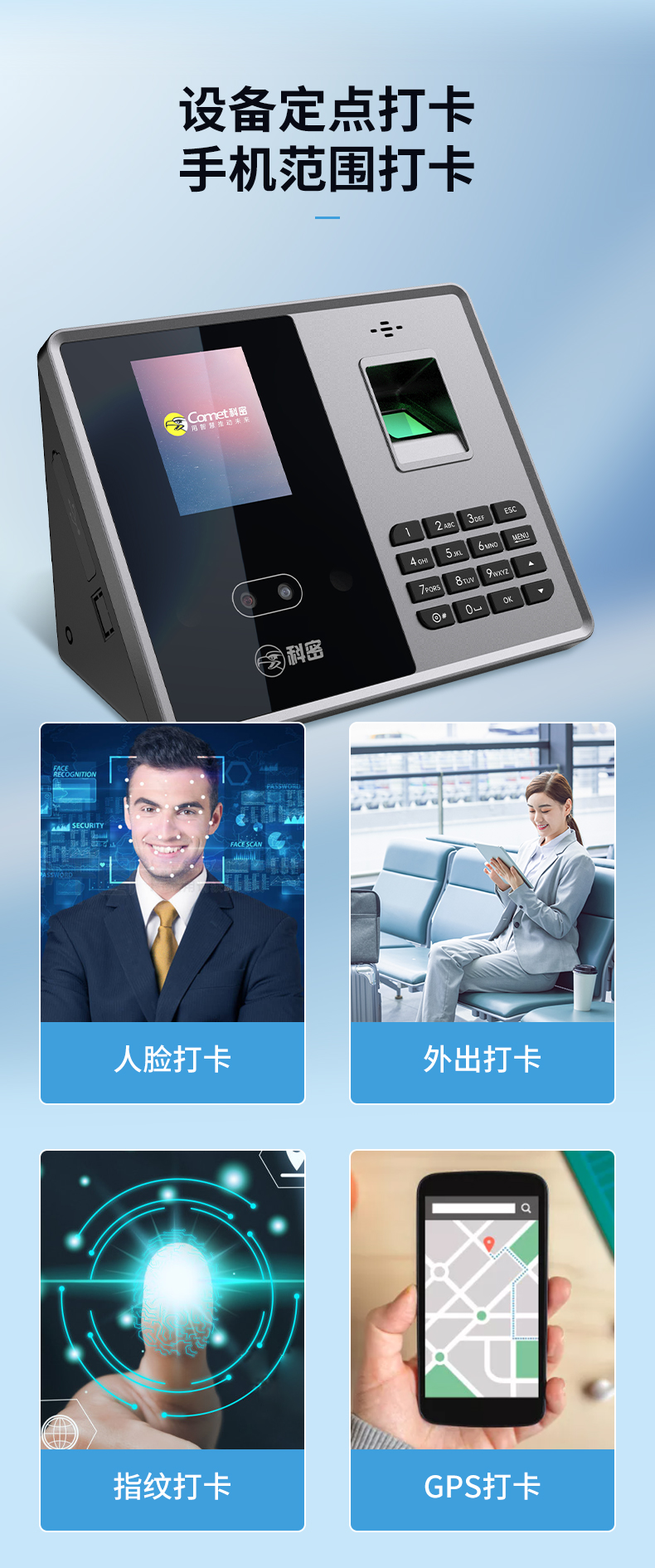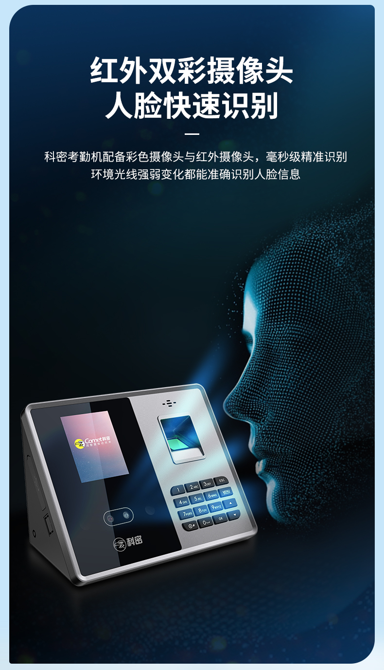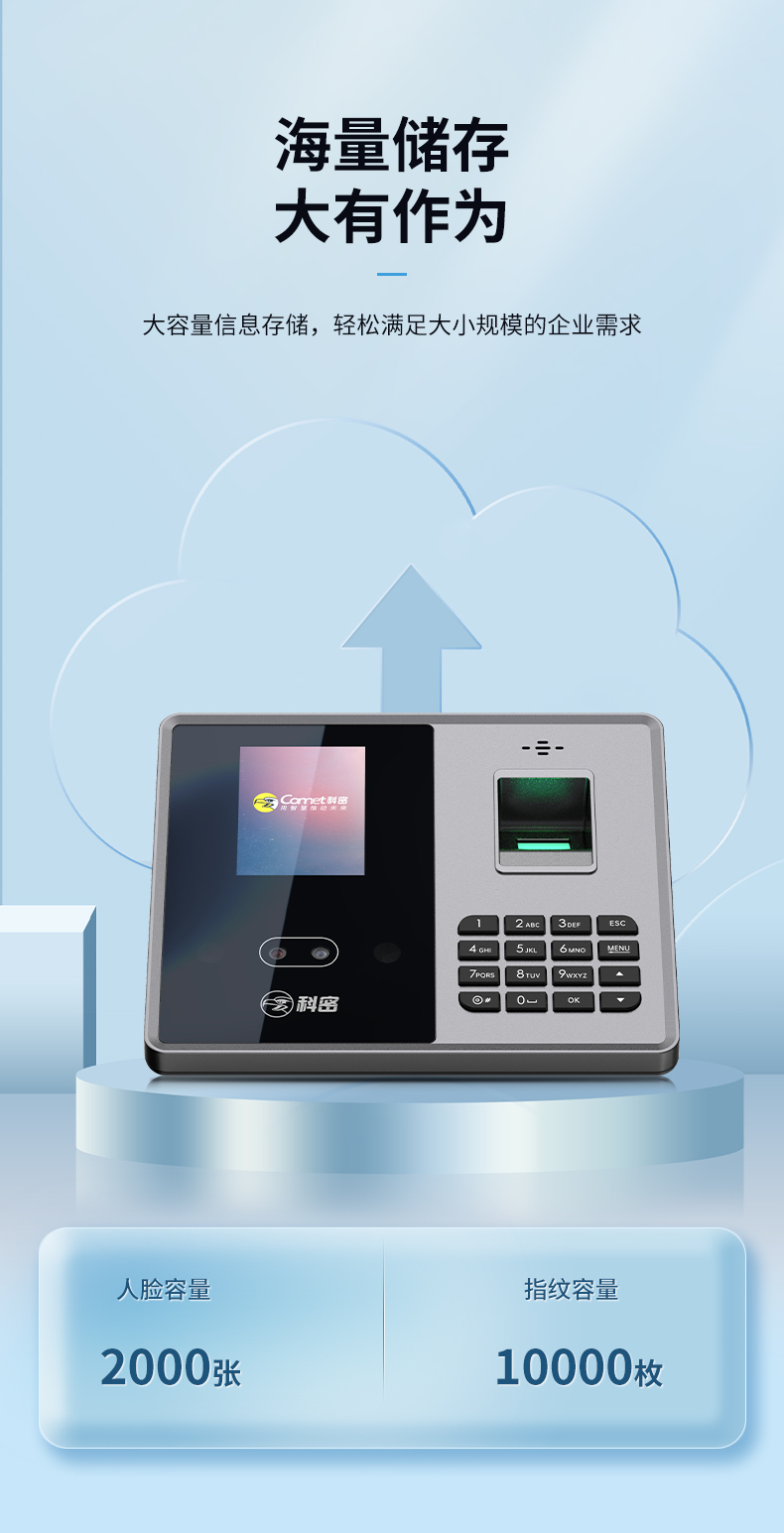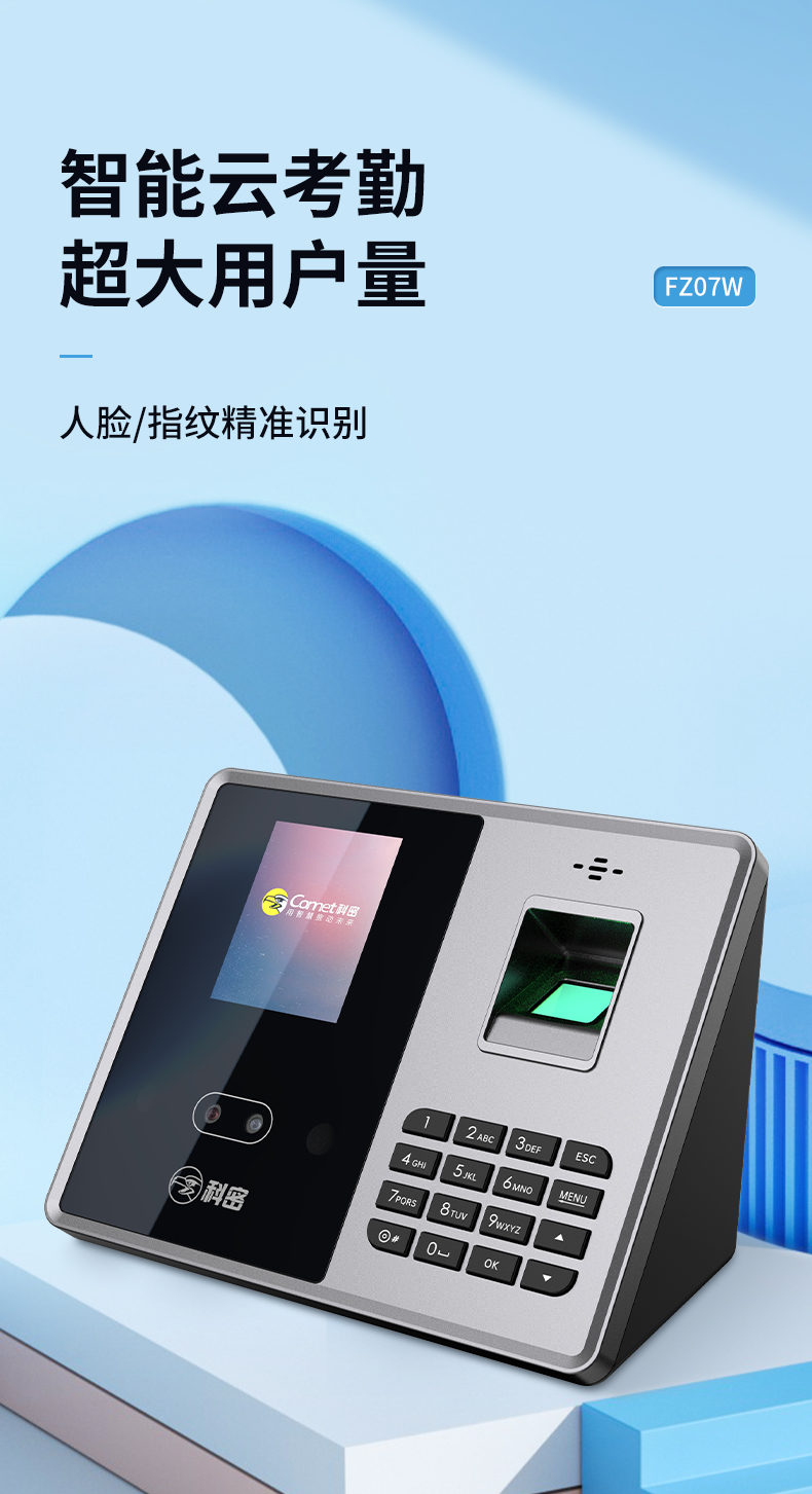 科密(comet) 智能企业云考勤机 人脸指纹考勤机打卡机 无接触打卡考勤机 wifi联网远程管理 FZ07W