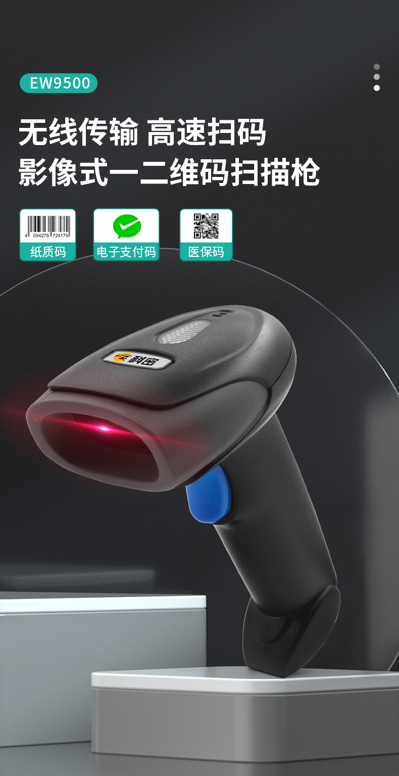 科密EW-9500无线扫码枪条码扫描枪一二维码扫描枪支付扫码收款零售物流盘点数据采集器