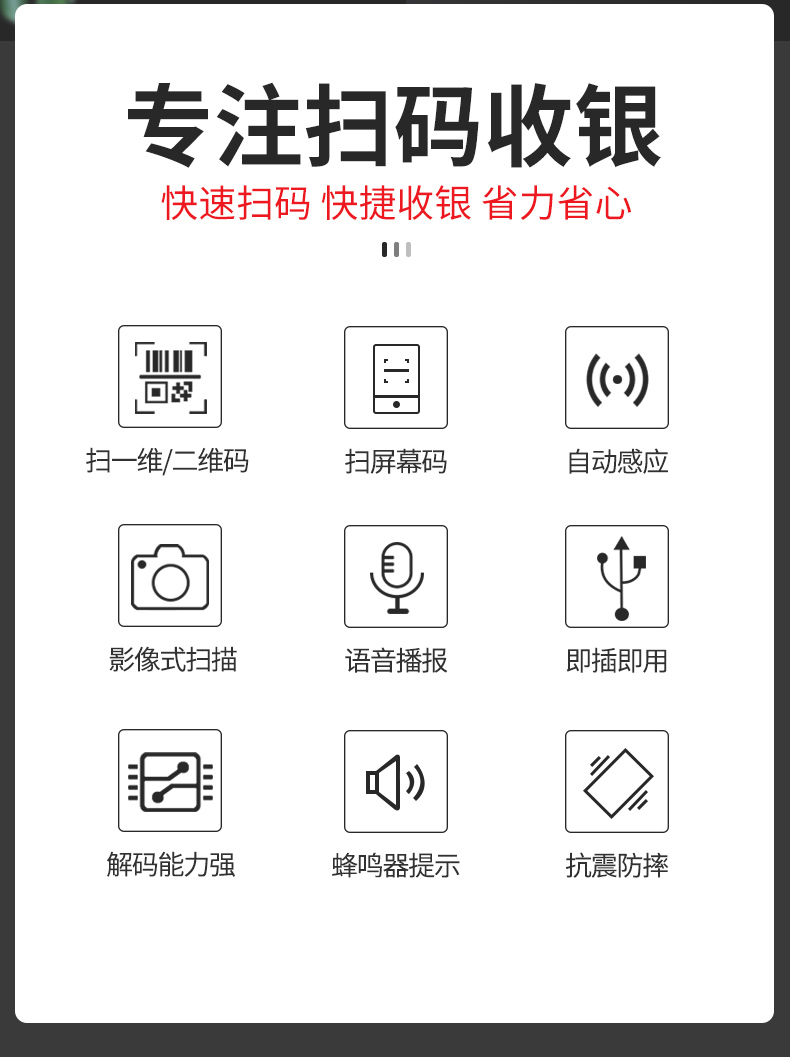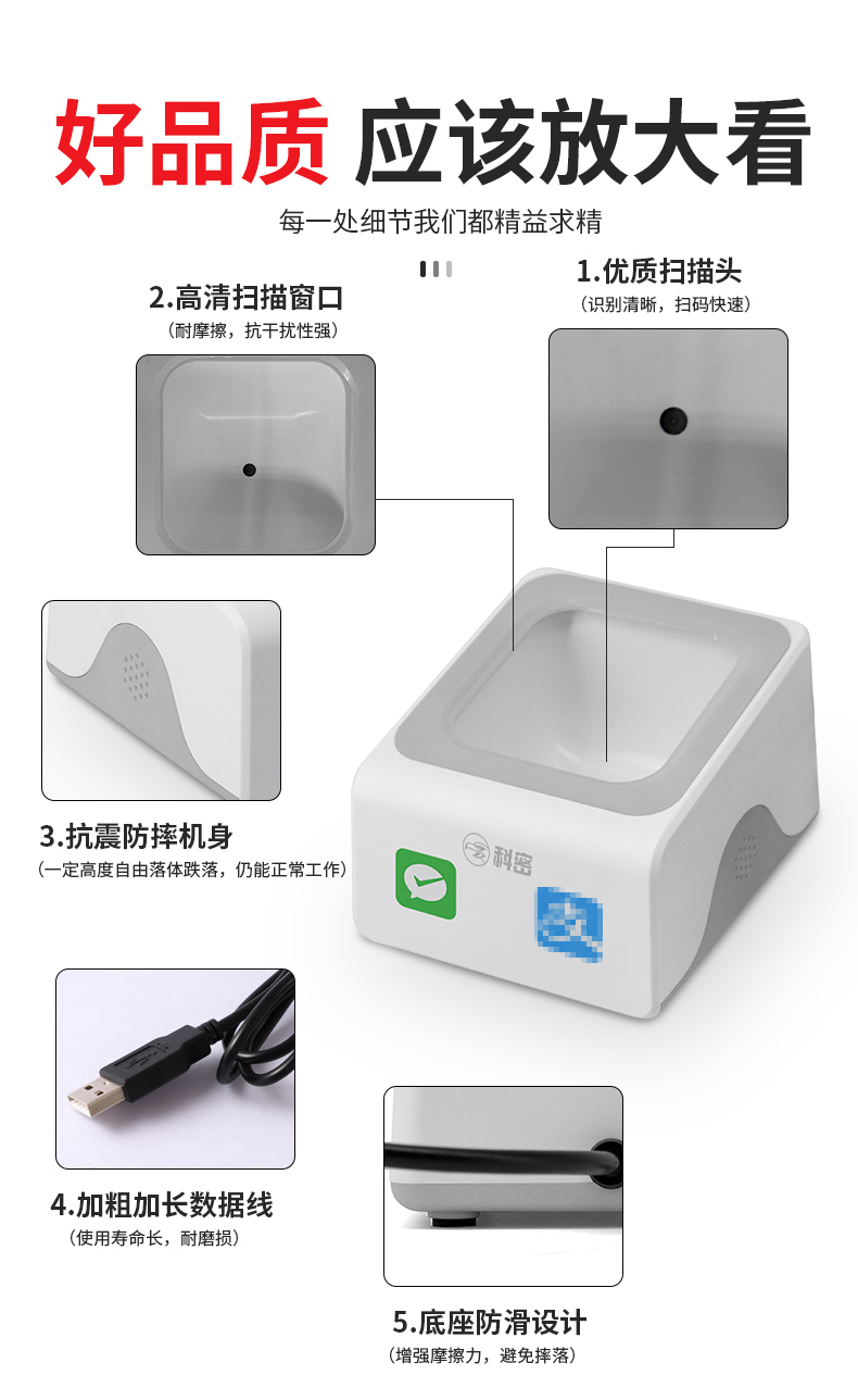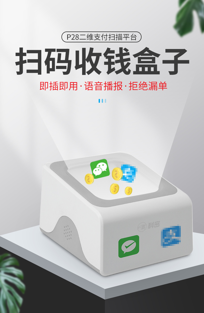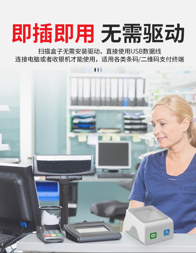 科密扫码盒子 扫码收款收银支付盒子扫描器 二维码扫描枪商品医保条码扫描支持屏幕码